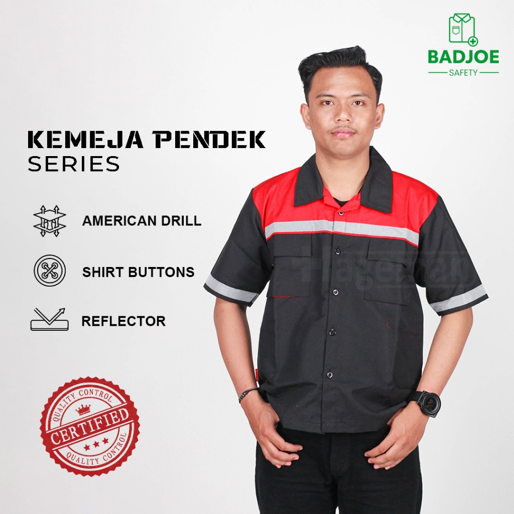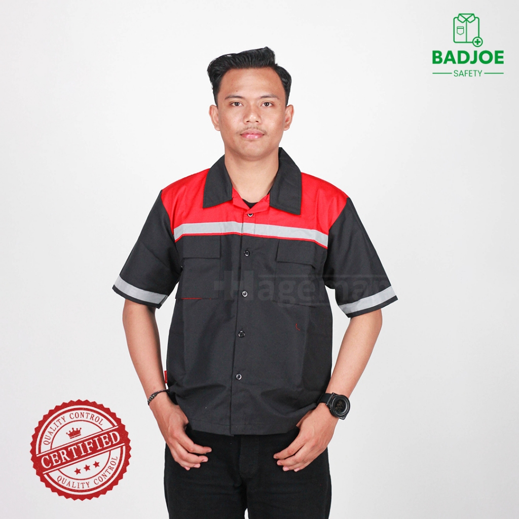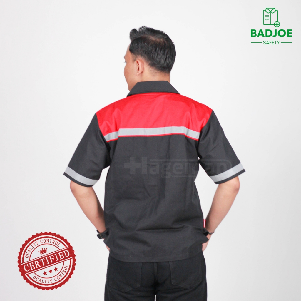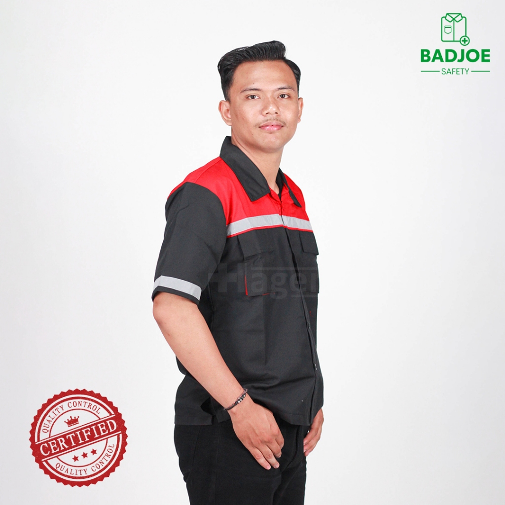 WEARPACK SAFETY LENGAN PENDEK WARNA MERAH KOMBINASI HITAM