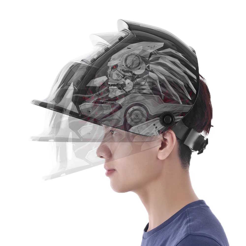 PUSAT TAFFGUARD HELM LAS FULL FACE OTOMATIS GELAP TERANG LISTRIK DEKO + SENTER LED WELDING HW-013