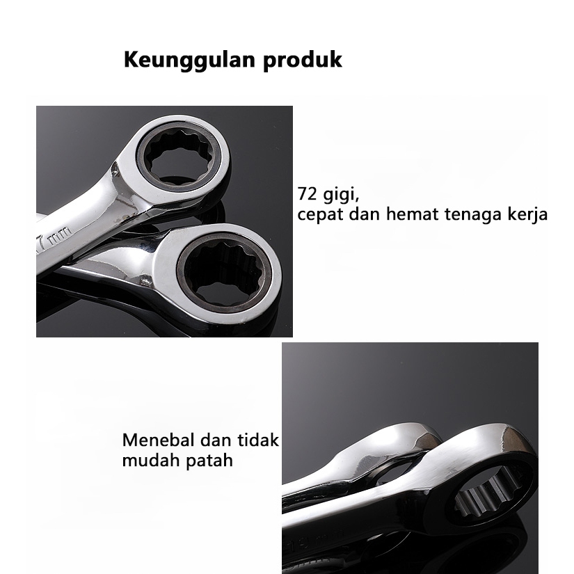 KUNCI RING PAS RACHET SET 6-22MM KOMBINASI KUNCI RATCHET SET 8PCS KUNCI RING SPANNER WRENCH