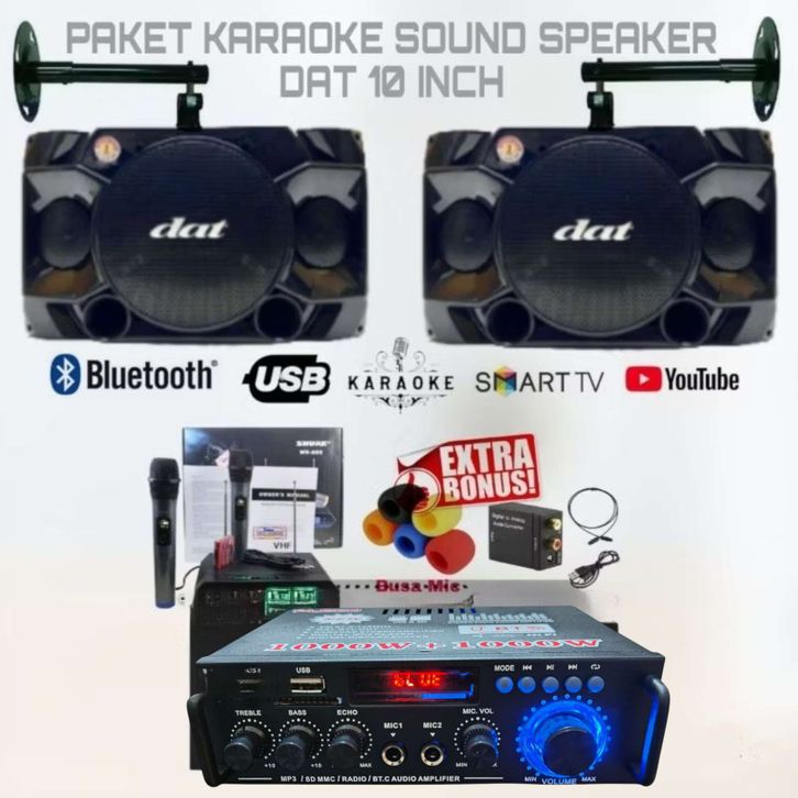 PAKET KARAOKE SPEAKER DAT 10 INCH SOUND SYSTEM RUMAH AMPLIFIER USB BLUETOOTH MIC WIRELESS MURAH BERKUALITAS AMPLI