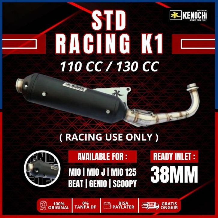 Knalpot Standar Racing Kenochi hitam Mio Sporty Beat Mio j Mio M3 Scoopy Genio Fazzio Filano Vario 110 Karbu
