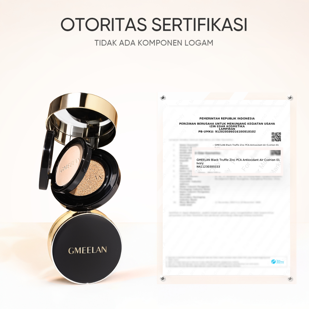GMEELAN Air Cushion Black Truffle Zinc PCA Antioksidan 7g+10g Foundation Oil-Control Waterproof High Coverage