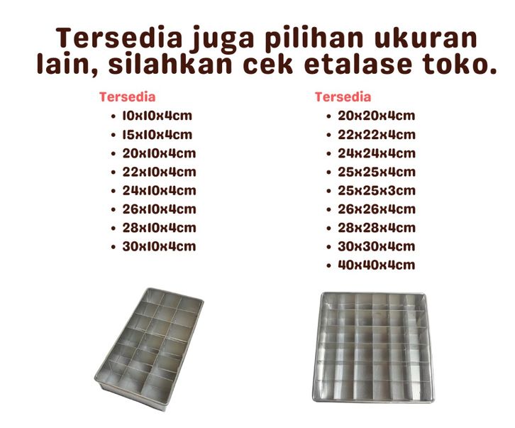 Loyang Sekat Brownies Ukuran 26x26x4cm Bahan Almunium Tebal Anti Lengket Sekat 36 49 64 100