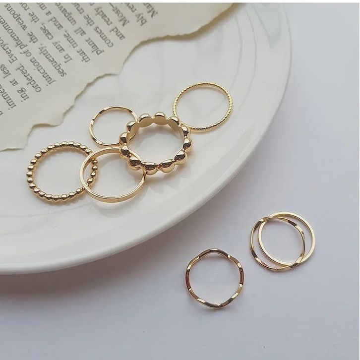 Perhiasan Wanita Cincin Kekinian Modis Cincin Anti Karat Anti Luntur Cincin Carrol Fisher 8 In 1 Fashion Alloy Paduan