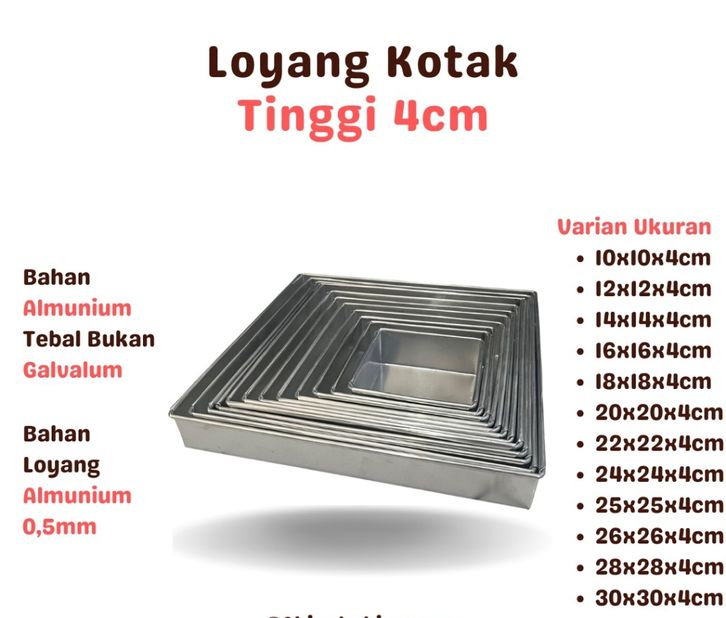 Loyang Kue Kotak Persegi Tinggi 4cm Cetakan Bolu Gulung Brownies Panggang Mini Tebal Anti Lengket