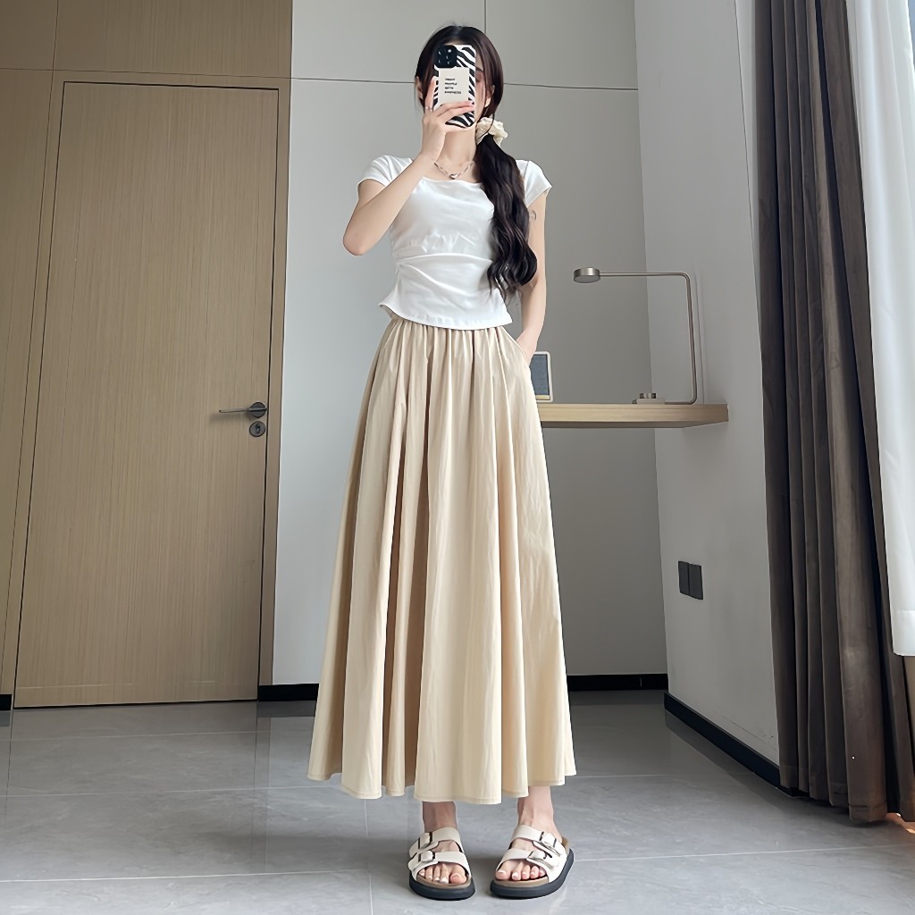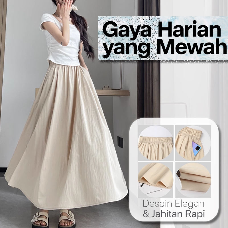 Rok Maxi A-Line Wanita Kekinian – Model Korea 2025, High Waist Ramping, Gaya Simple tapi Mewah