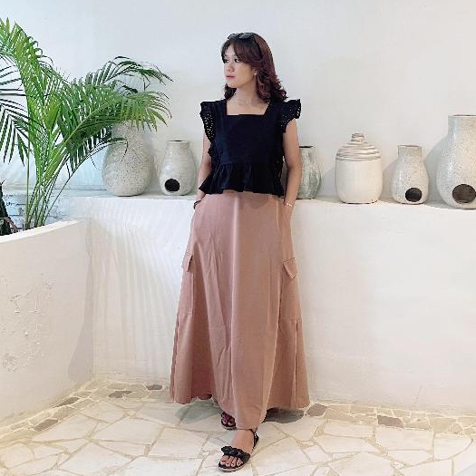 Cargo A Line Skirt Scuba Premium Fit XXL - Rok A Line Cargo Polos Wanita - Rok Panjang Polos Kasual Kantong Samping - Ro