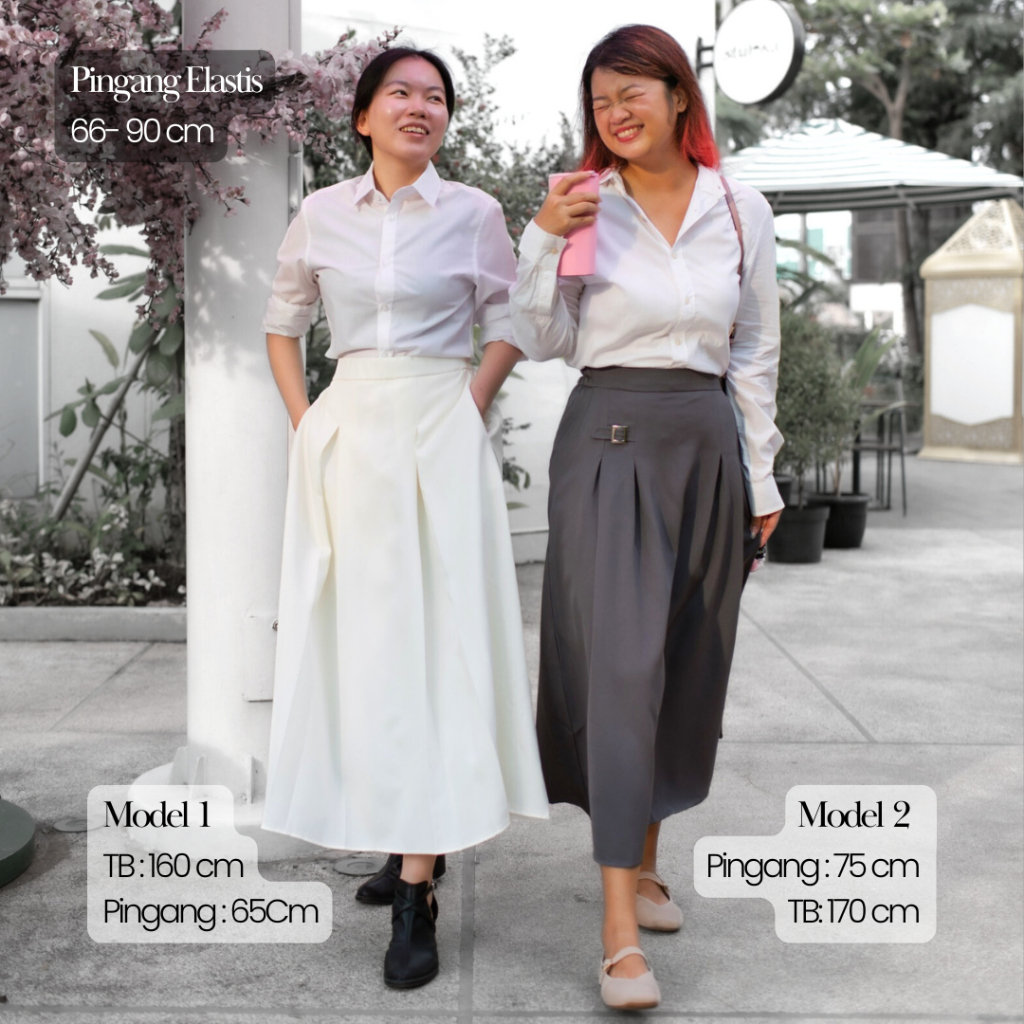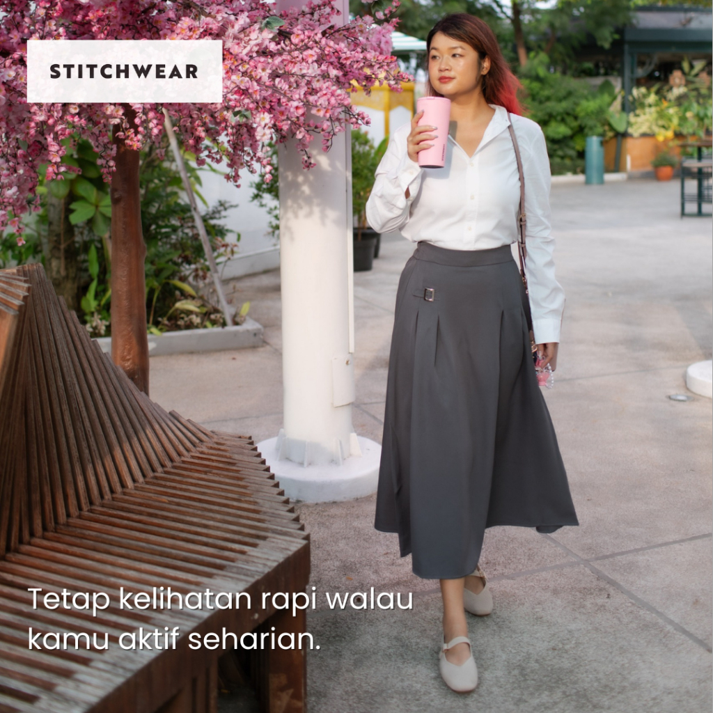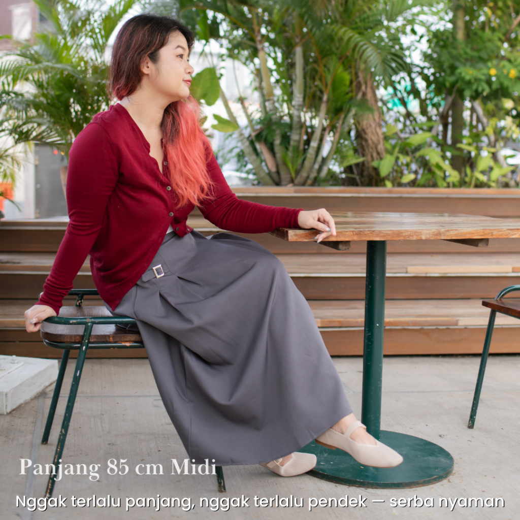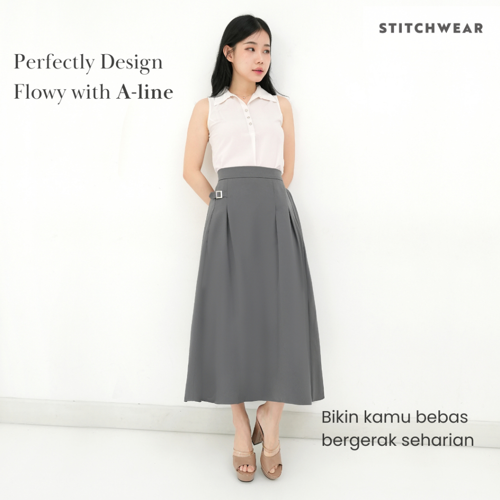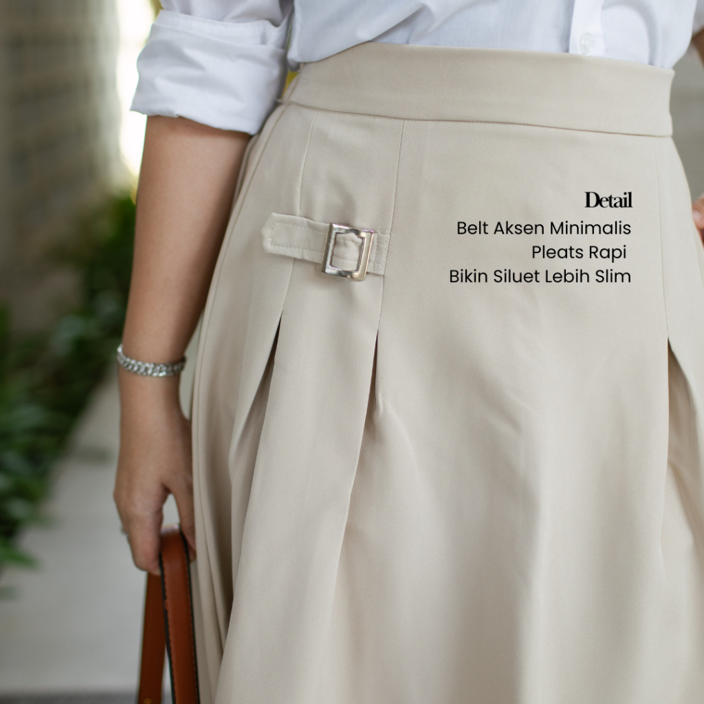 Rok Midi STELLAR Lipit Depan + Belt Korean Look | Stitchwear | Untuk Kerja & Hangout