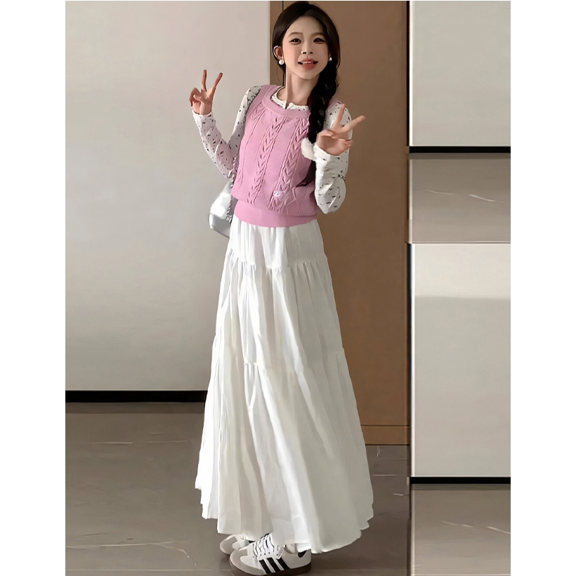 rok korean style wanita kekinian/ rok putih plisket plisket premium panjang midi