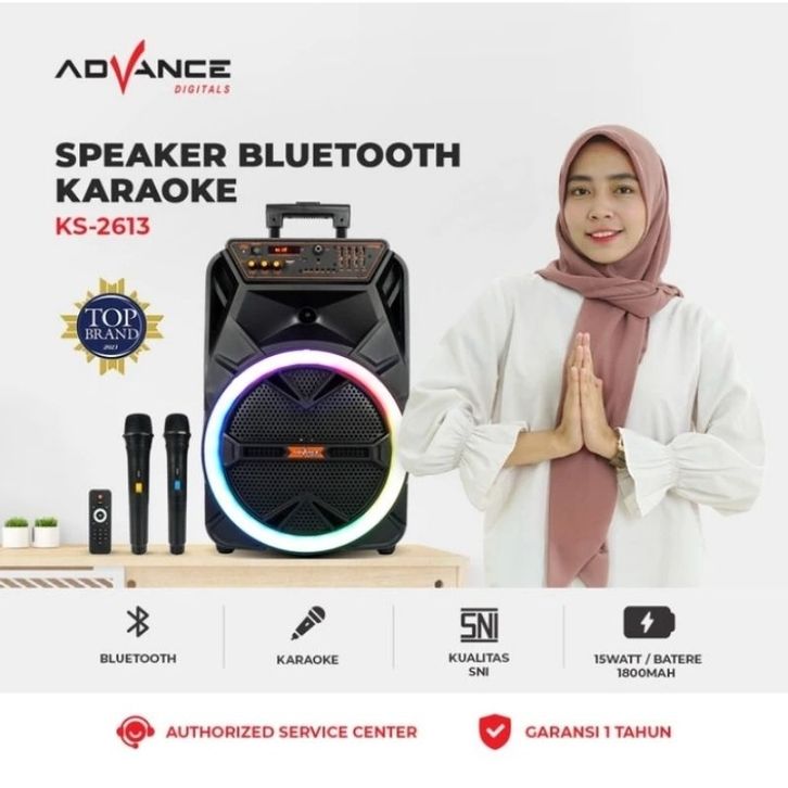 PROMO BATAM - ADVANCE KS2613 KS 2613 portable speaker bluetooth trolley 12 inch 2 mic wireless ORIGINAL