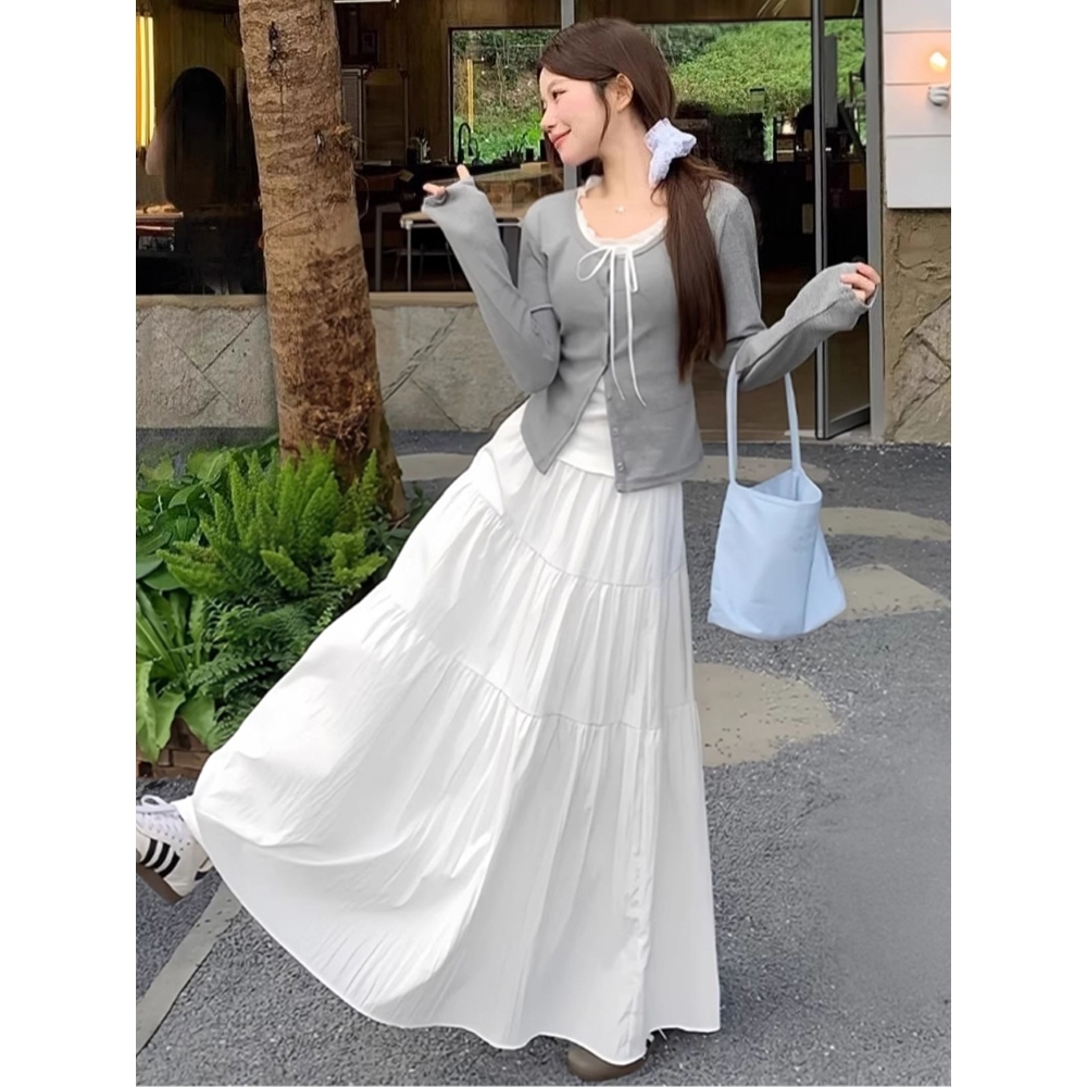 rok korean style wanita kekinian/ rok putih plisket plisket premium panjang midi