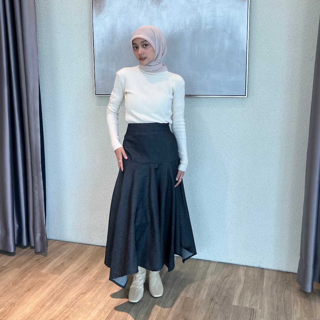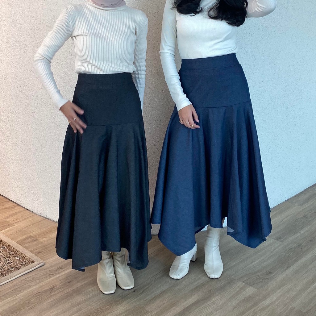 Bling It On - Liora Asymmetrical Flare Skirt - Rok Asimetris Wanita Denim Panjang