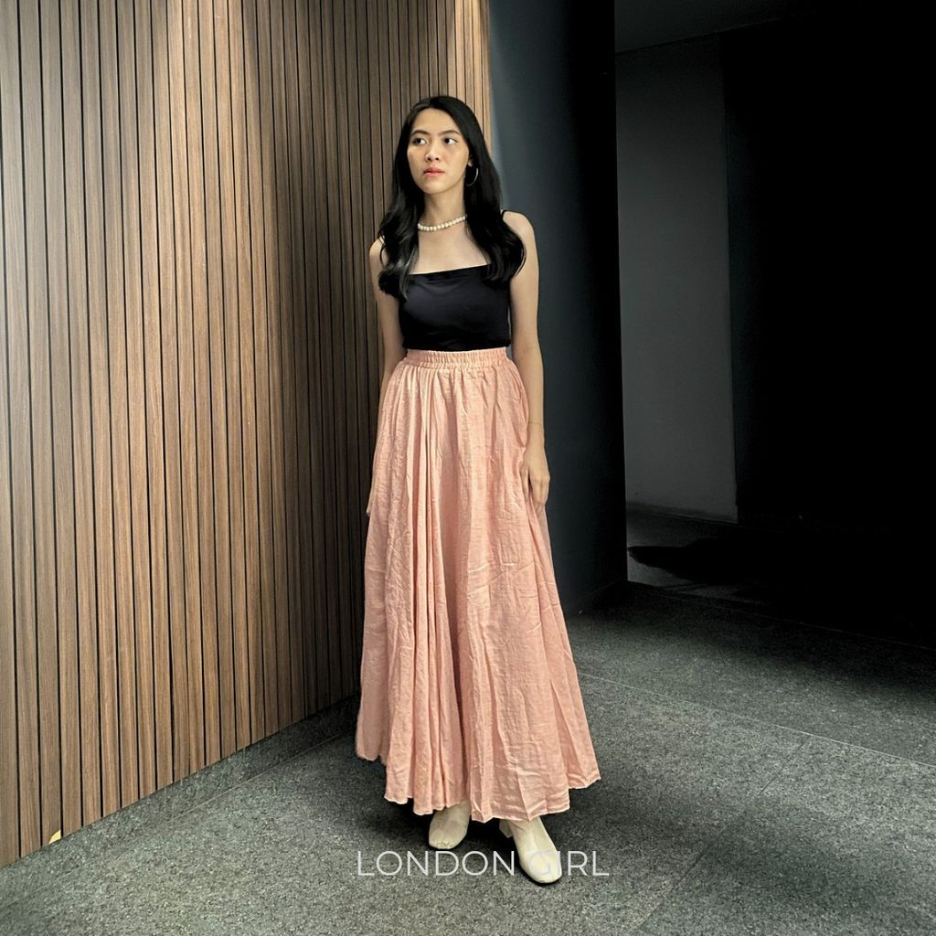 Verly Rok Wanita Panjang Bahan Katun Linen / Rok Skirt Premium Panjang Style / Rok Wanita