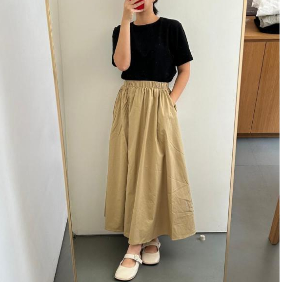 Rok Panjang Wanita Casual Skirt Polos A Line