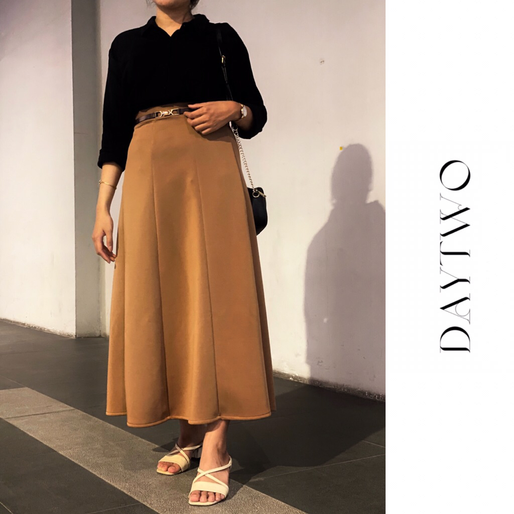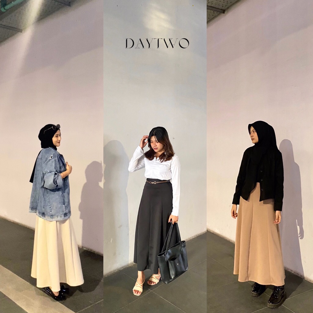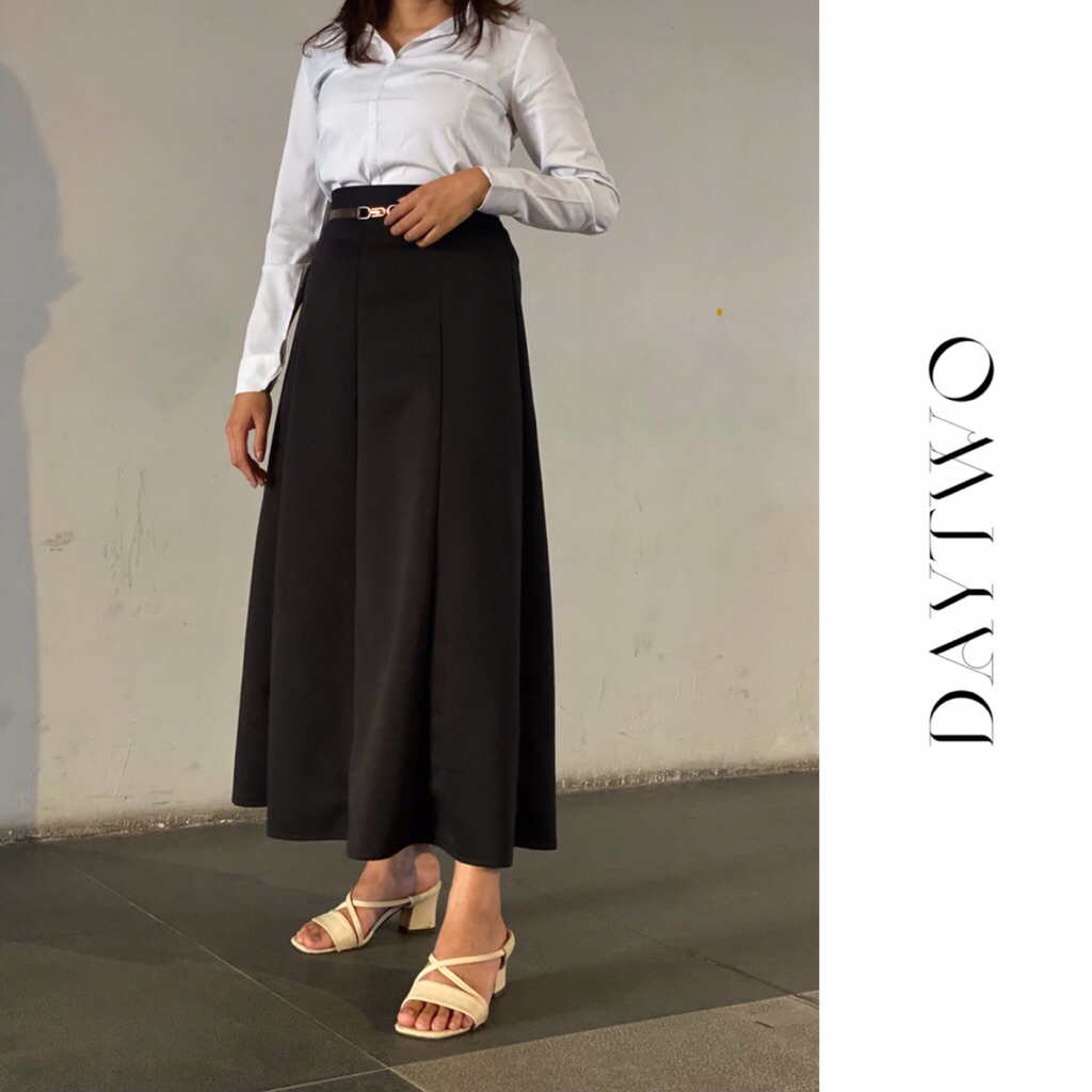 DAYTWO - Juan Skirt | Rok Kerja Kuliah Wanita | Maxi Skirt Korean Style - Rok Basic Polos - Maxi Rok Panjang Wanita
