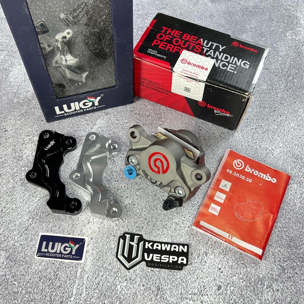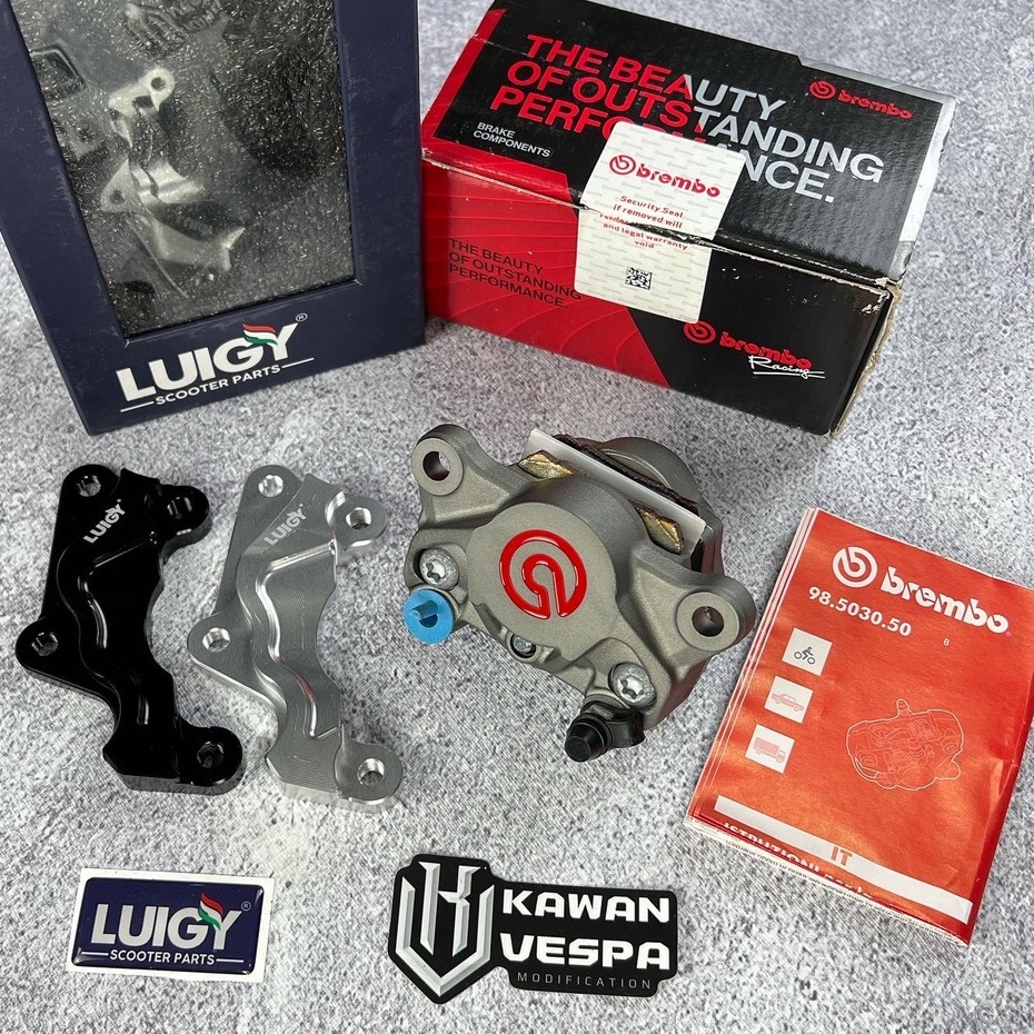 Brembo 2 Piston Grey Red + Adaptor Luigy 220mm Vespa Sprint Prima Abs