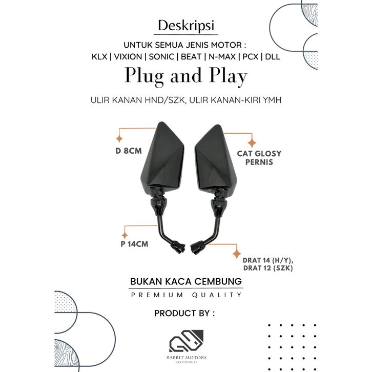 Kaca Spion Motor SPION VARIASI - SPION MOTOR CLEAR GLOSSY / HONDA / YAMAHA / DTRACKER / PCX / VARIO