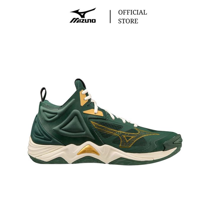 PROMO MIZUNO SEPATU VOLLEY WAVE MOMENTUM 3 MID PINENEEDLE MP GOLD WHITE MIZV1GA231747
