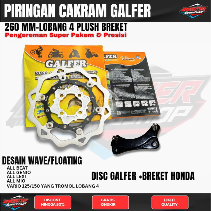Piringan Cakram Variasi Piringan Disc Cakram Galfer 260mm Plush Breket Beat Scoopy Mio Genio Vario 125 / 150 / 160 CBS