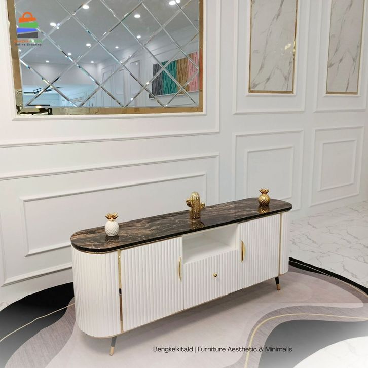 Delvira Meja TV Minimalis Modern Rak TV Lemari TV Bufet TV Minimalis Buffet Oval Credenza Aesthetic