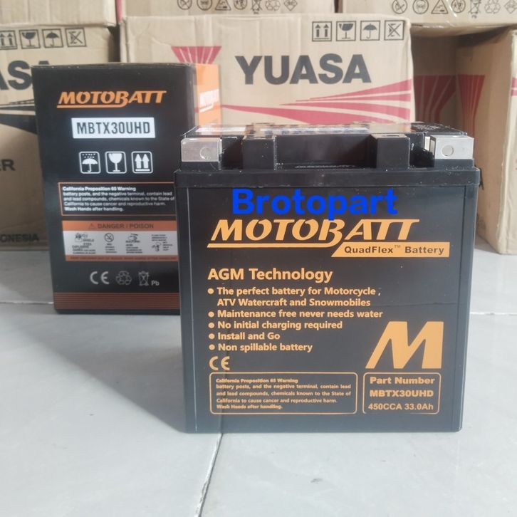 Aki Motor Harley Davidson Touring FL/FLH Series Motobatt Gel MBTX30UHD MF kering 32Ah