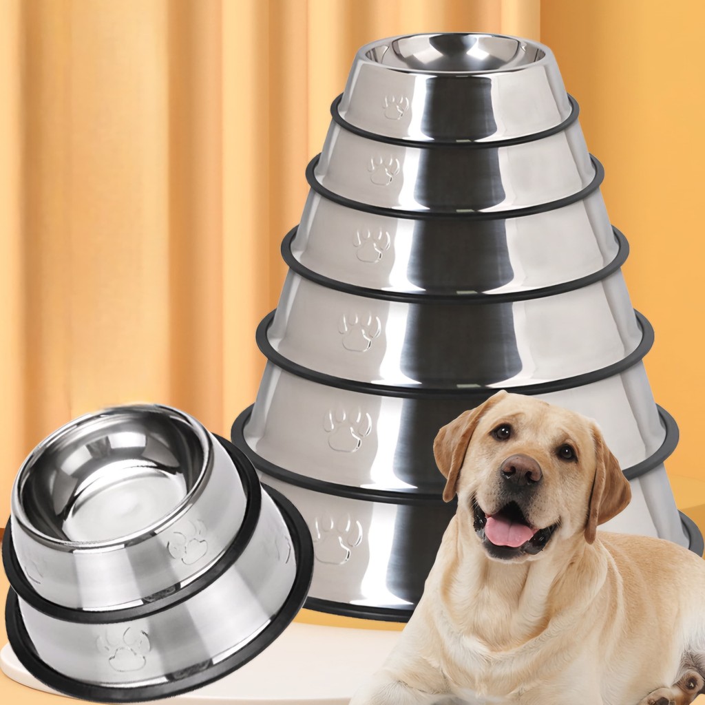 Tempat Makan Hewan Anti Slip Mangkuk Makan Kucing dan Anjing Bahan Stainless Steel Tebal Mangkok Besi Hewan Anti Karat