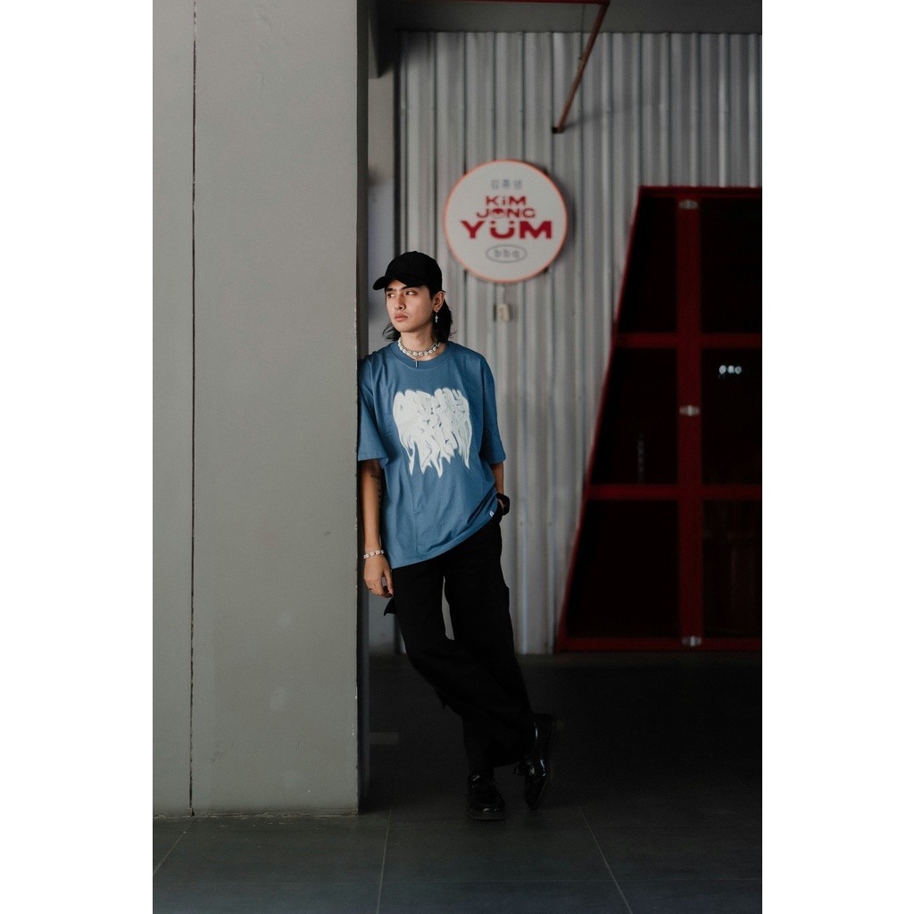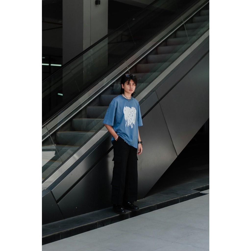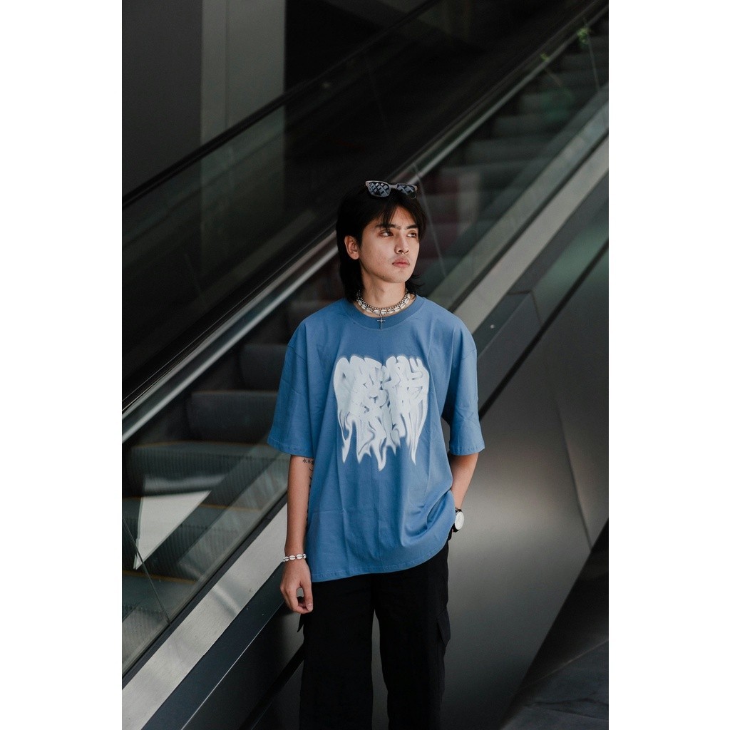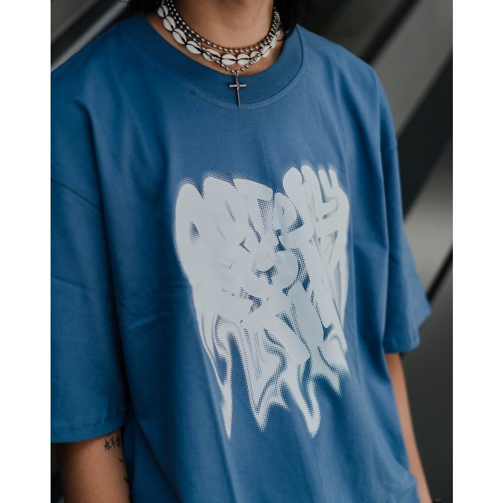 OOTDSUPPLY Oversized Tshirt Destroy Black & Steel Blue l Kaos Oversize Pria dan Wanita OVZ163