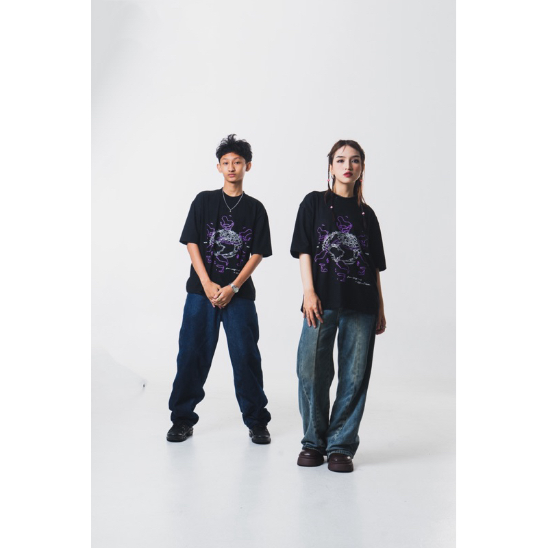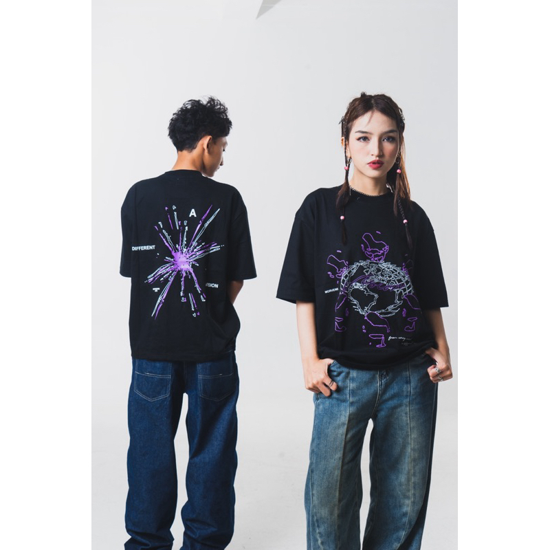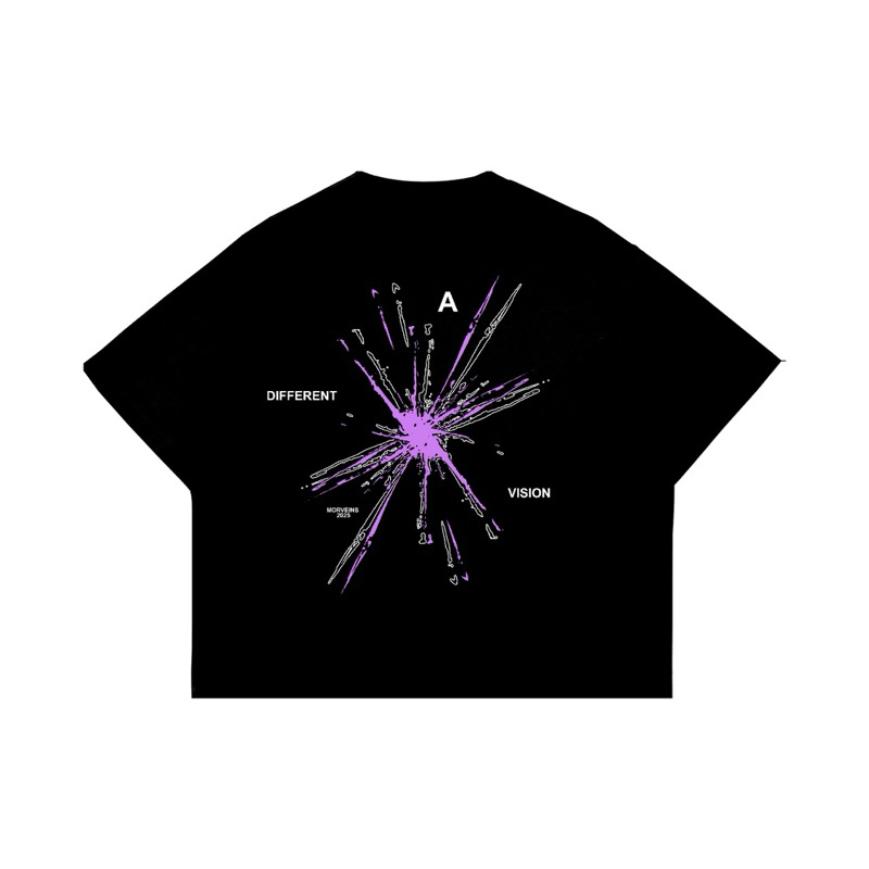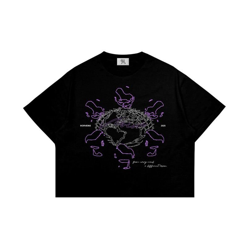 T-Shirt | Boxy Fit | Abstract World | Black | Morveins | Cotton Combed 20s