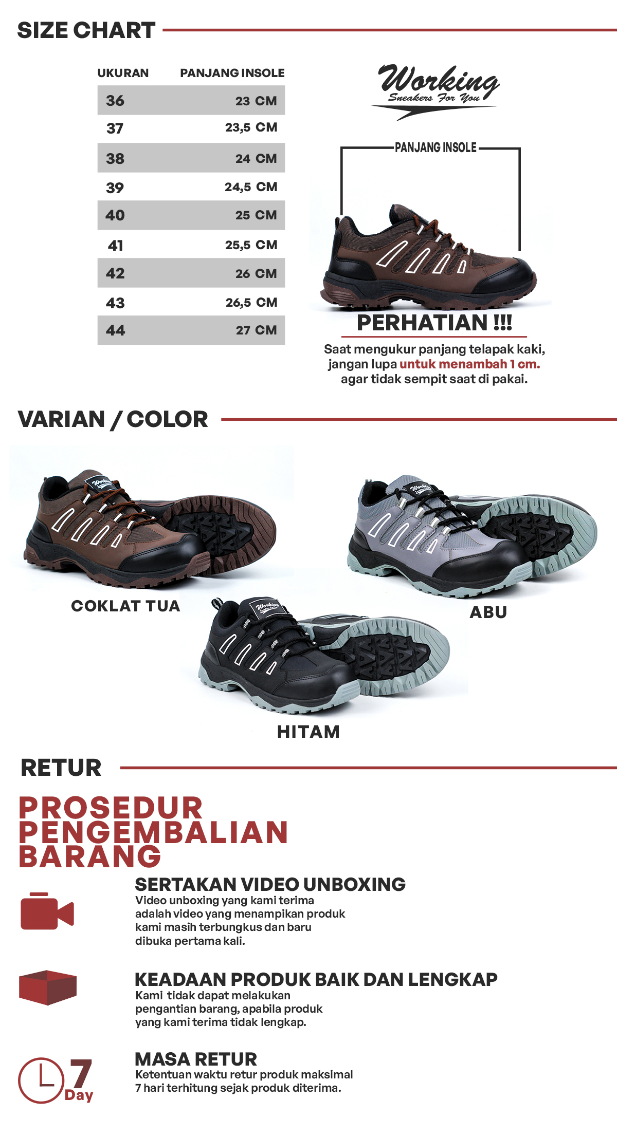 Working Sneakers For You Sepatu Kerja dan Hiking Pria Kode G-18 Size 38 - 43