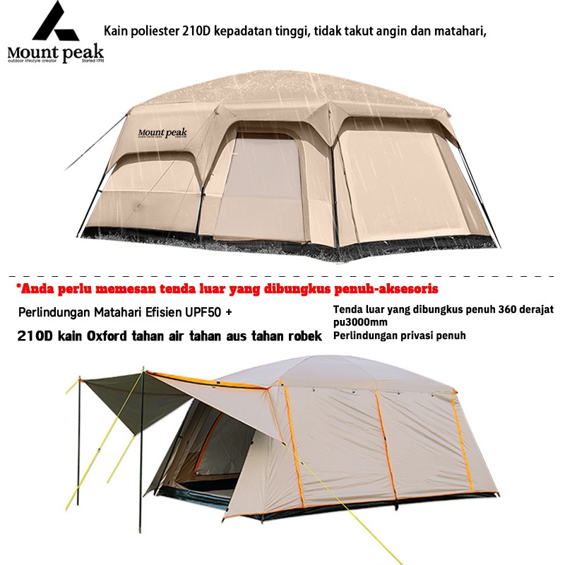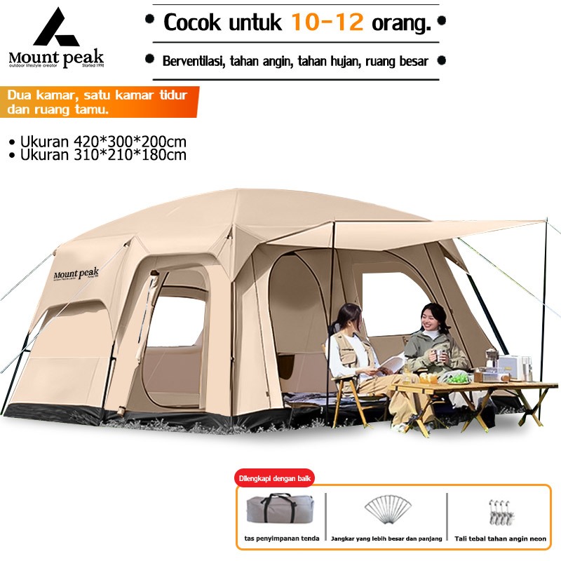 MOUNTPEAK TENDA CAMPING 8 - 12 ORANG(420✖300✖200CM)PORTABLE WATERPROOF CAMPING TENT 4-6 ORANG/ KEBUTUHAN SEMALAM YANG
