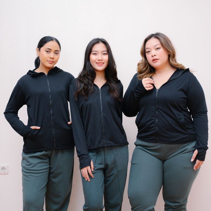 TERLAKU IE.DEMODE Jaket Olahraga Running Fitness Wanita Outer Sport Breath Technology Polos Hitam icirg