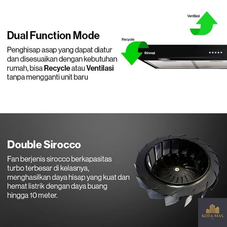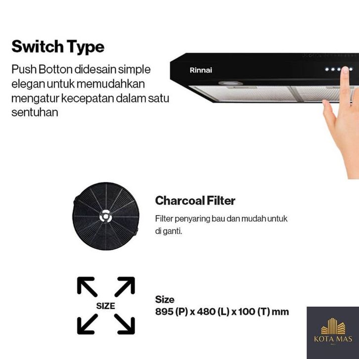 Cooker Hood Rinnai 90cm RH229B Exhaust Tudung Hisap Asap Kompor Dapur