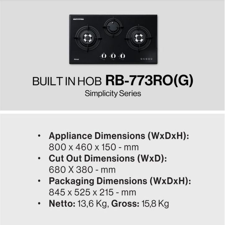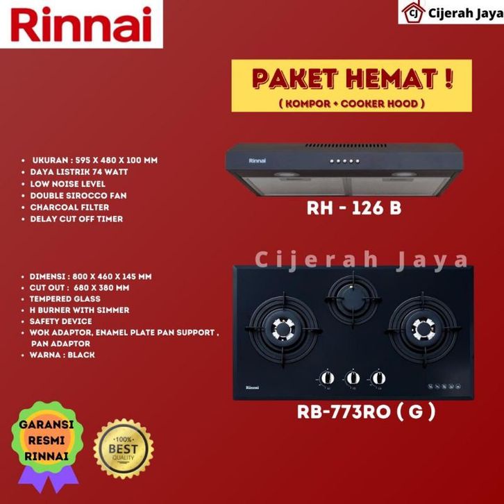 RINNAI PAKET KOMPOR GAS TANAM 3 TUNGKU RB 773RO(G) RB773ROG RB 773ROG + COOKER HOOD