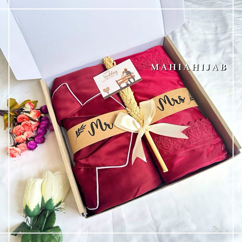 HAMPERS WEDDING BAJU TIDUR SATIN COUPLE / HADIAH PERNIKAHAN SETELAN PIYAMA PRIA DAN LINGERIE KIMONO WANITA / HAMPERS WEDDING / BOX KADO PERNIKAHAN PASANGAN ANNIVERSARY