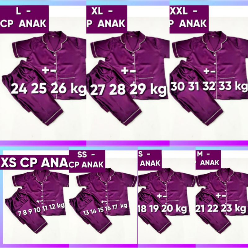 PIYAMA SATIN POLOS COUPLE UNGU TERONG / EGGPLANT / VIOLET SETELAN