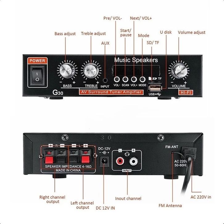 [Star] Ampli Mini / Ampli Mini Bluetooth / 800W G30 Mini Amplifier/12V/220V FM SD HiFi Bluetooth 5.0 Stereo Player