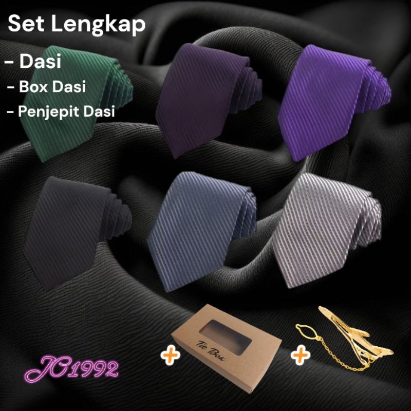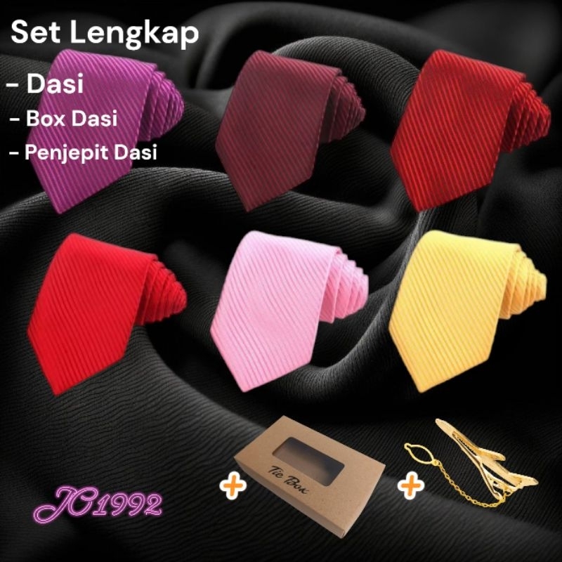 SET DASI SALUR + BOX DASI + JEPIT DASI - UK 3 INCHI PREMIUM QUALITY TEBAL