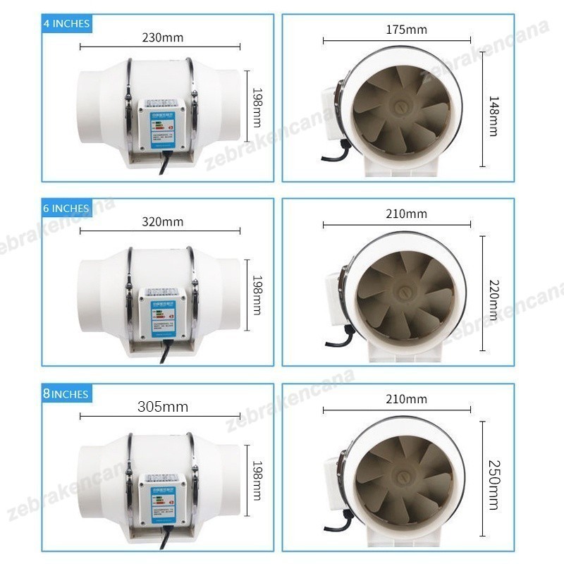 blower dapur penghisap asap dapur 4" 6" 8" 220V Blower Hisap Untuk Kamar Mandi Dapur Kipas Angin Buang Diam Ekstraktor K