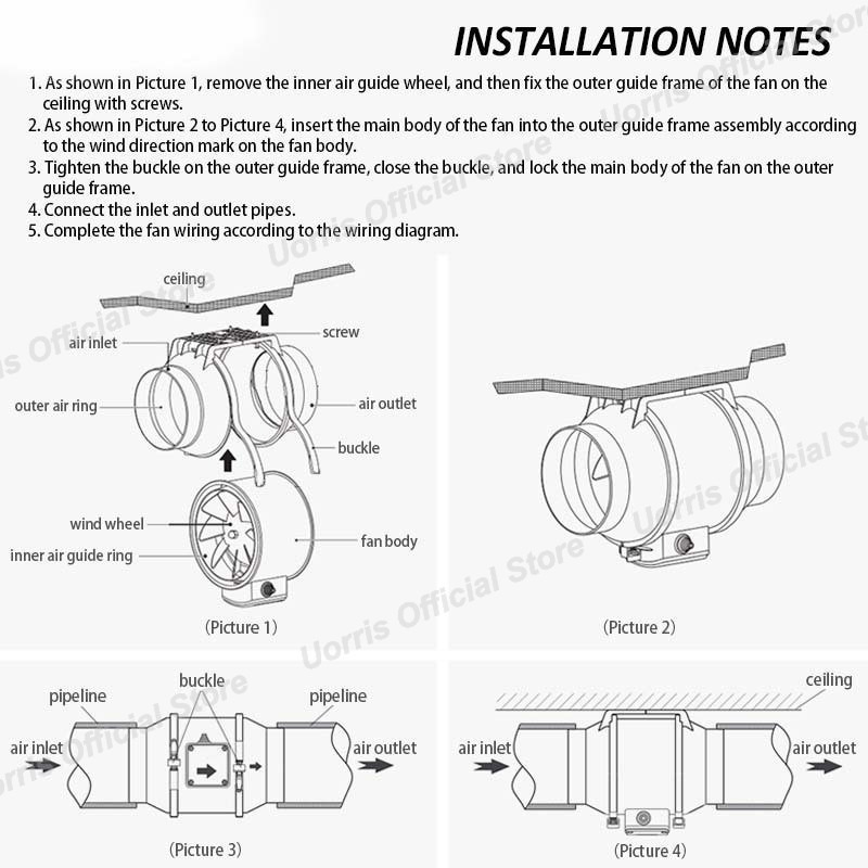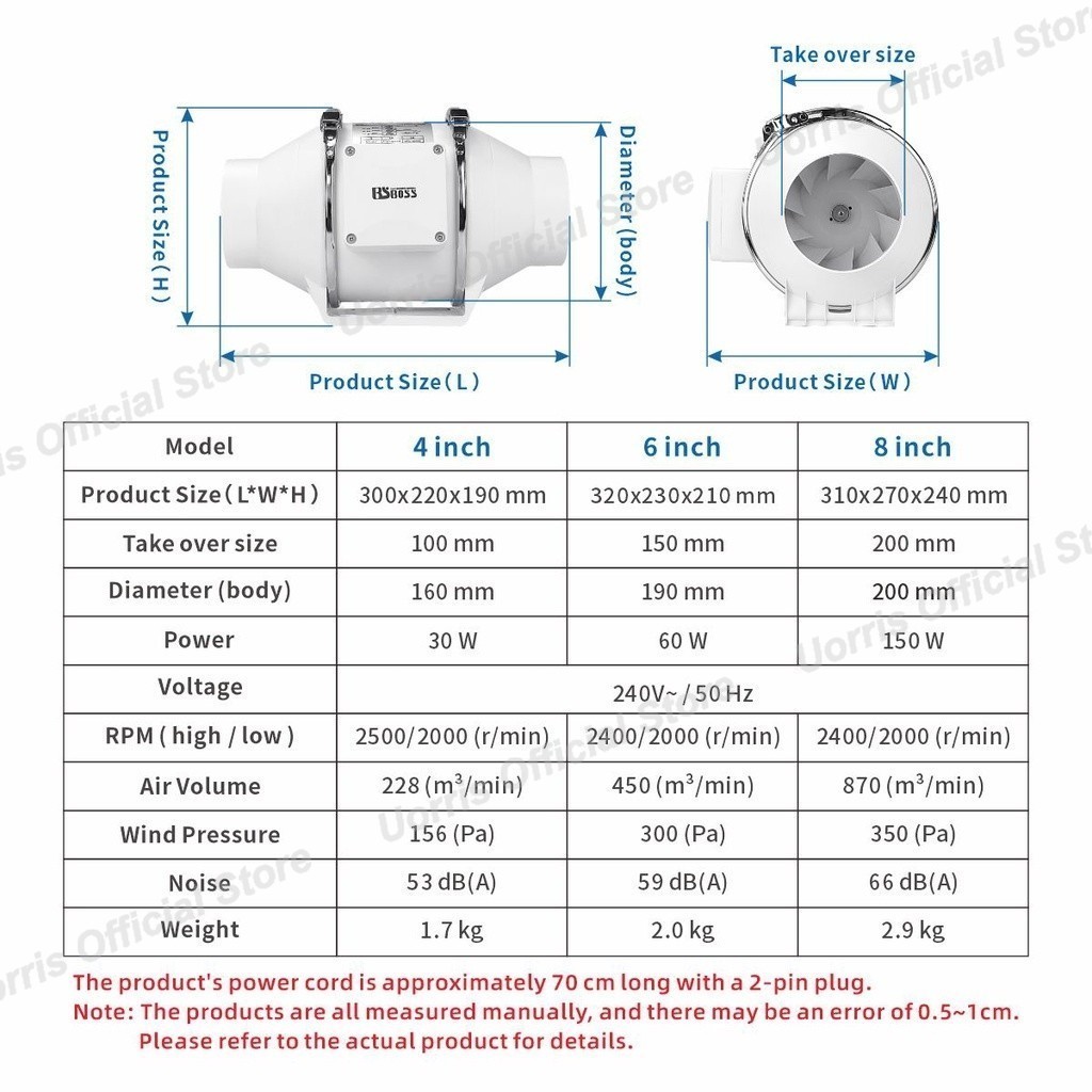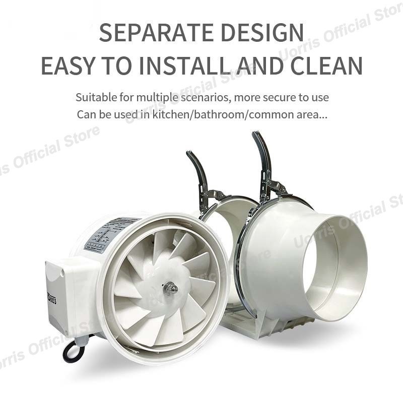 UORRIS blower dapur penghisap asap dapur 4" 6" 8" 220V Blower Hisap Untuk Kamar Mandi Dapur Kipas Angin Buang Diam Ekstr