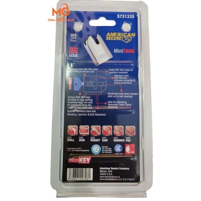 gembok cakram AMERICAN SECURE S731335 Gembok Motor 40 mm Mini Tank Kunci Cakram Universal Stainless Steel MGJ