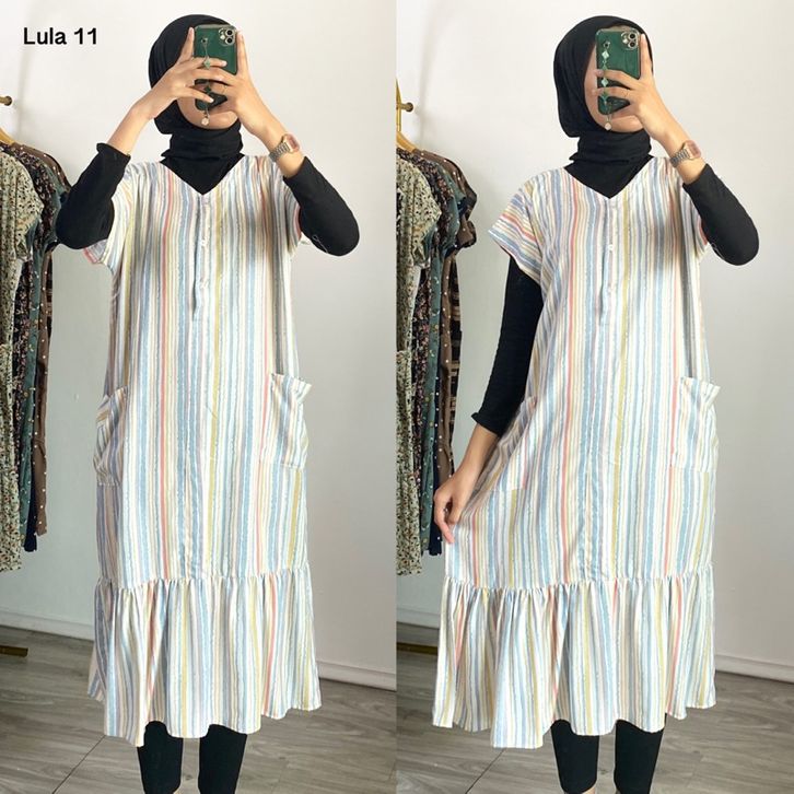 Daster Wanita Kekinian Murah Sexy Busui Lula Dress Daster Busui Pendek Ruffle Kerah V Neck Kancing Kekinian Terbaru Wan