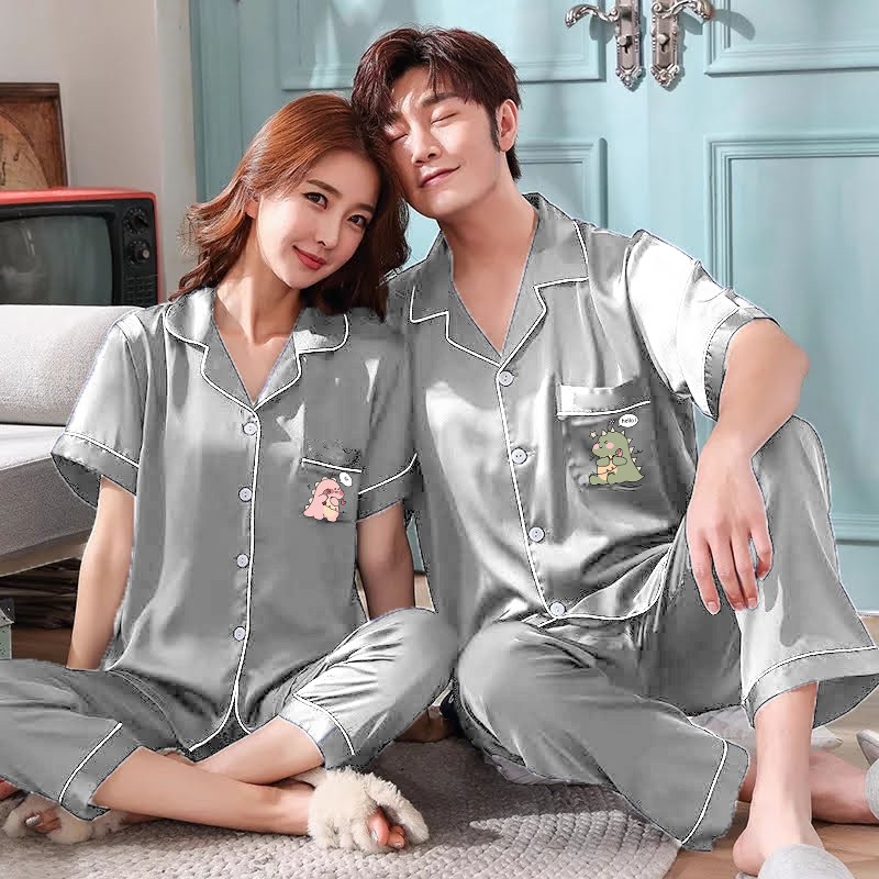 ZAVYN PIYAMA SATIN COUPLE CP HI DINO LENGAN PENDEK