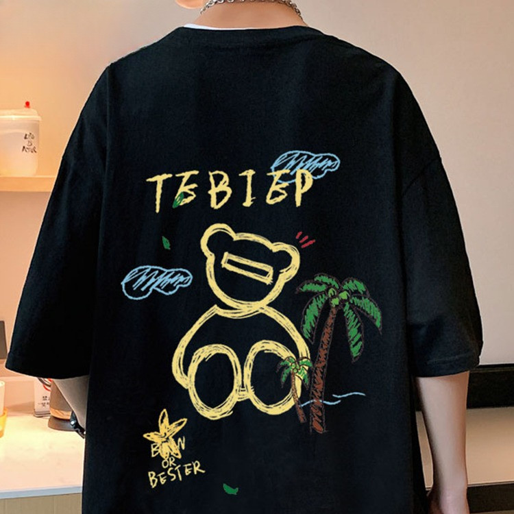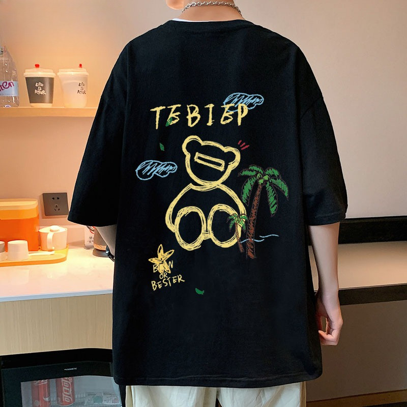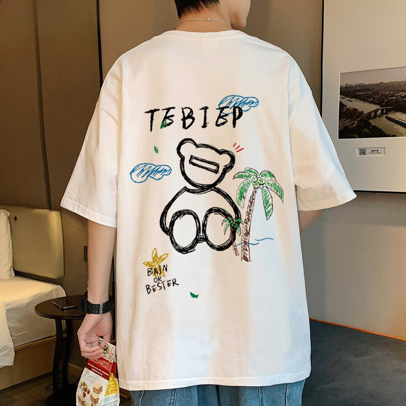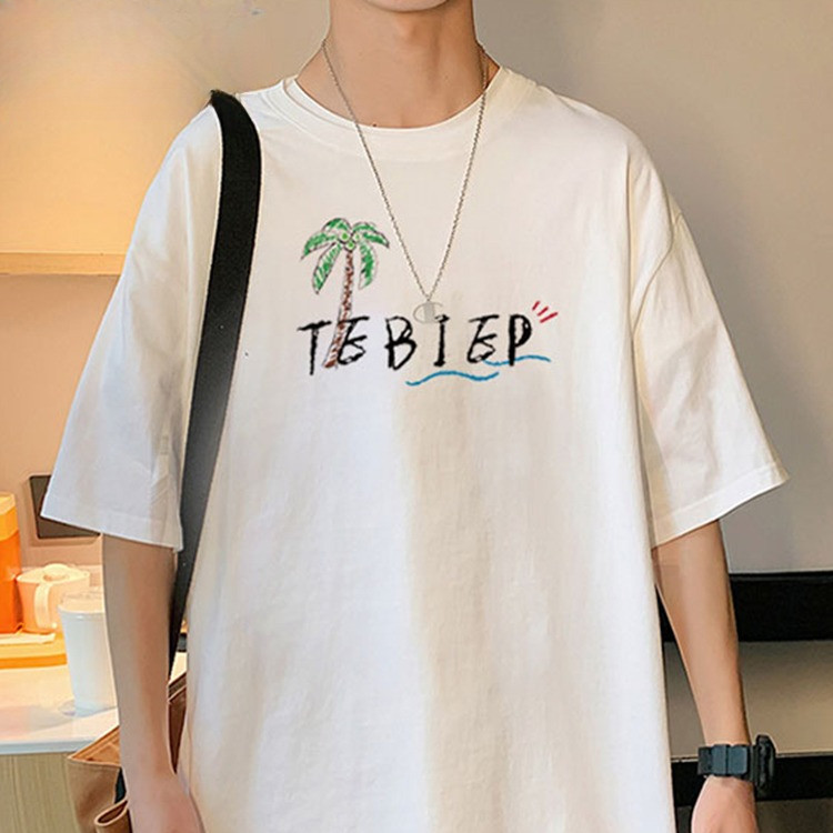 Seni Prancis Kaos Putih Kaos Pria 2025Musim Panas Atasan Musim Panas Kapas Cahaya Mewah Eropa dan Amerika Longgar Fit Mi