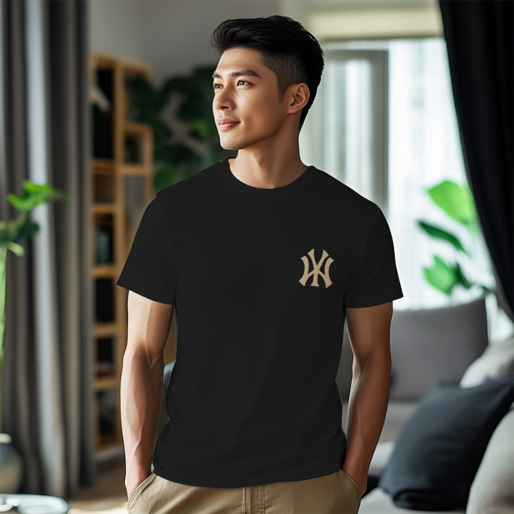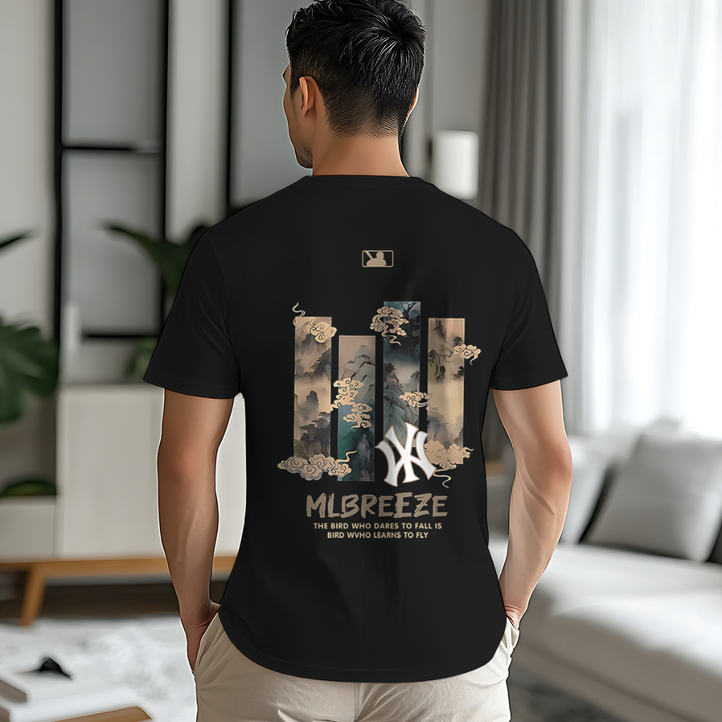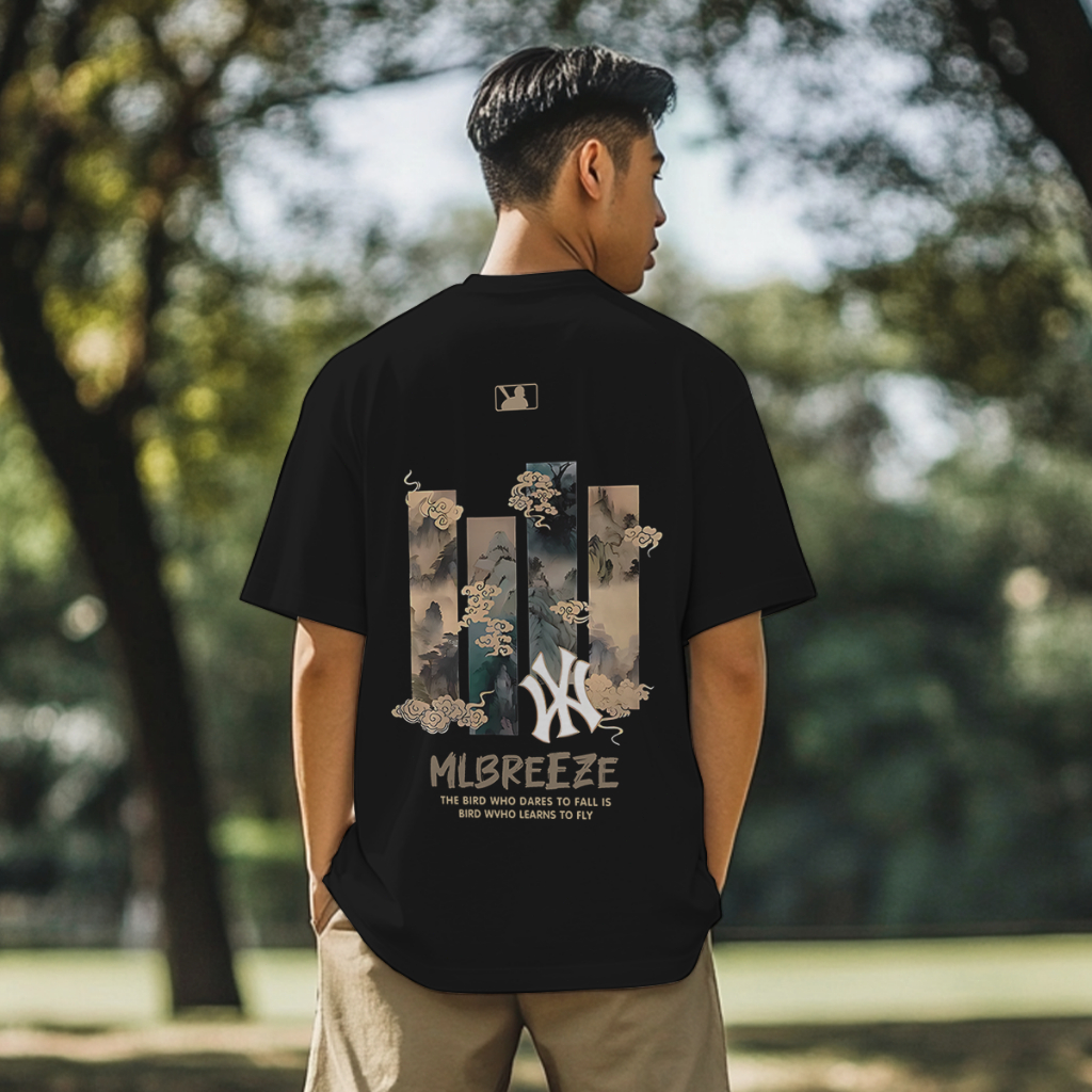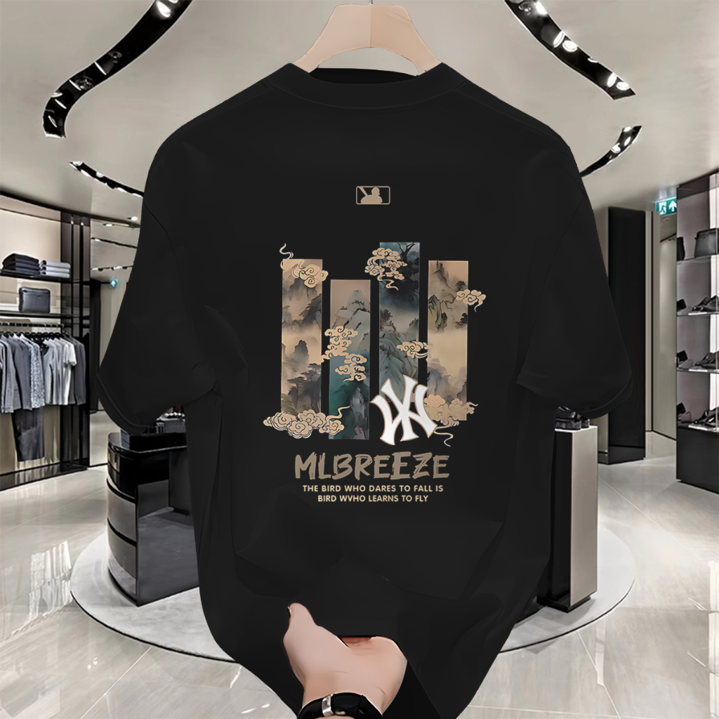 【Oversize 24S cotton100% baju kaos 】 Pencetakan lanskap pasang surut nasional kaos lengan pendek pria musim panas baru