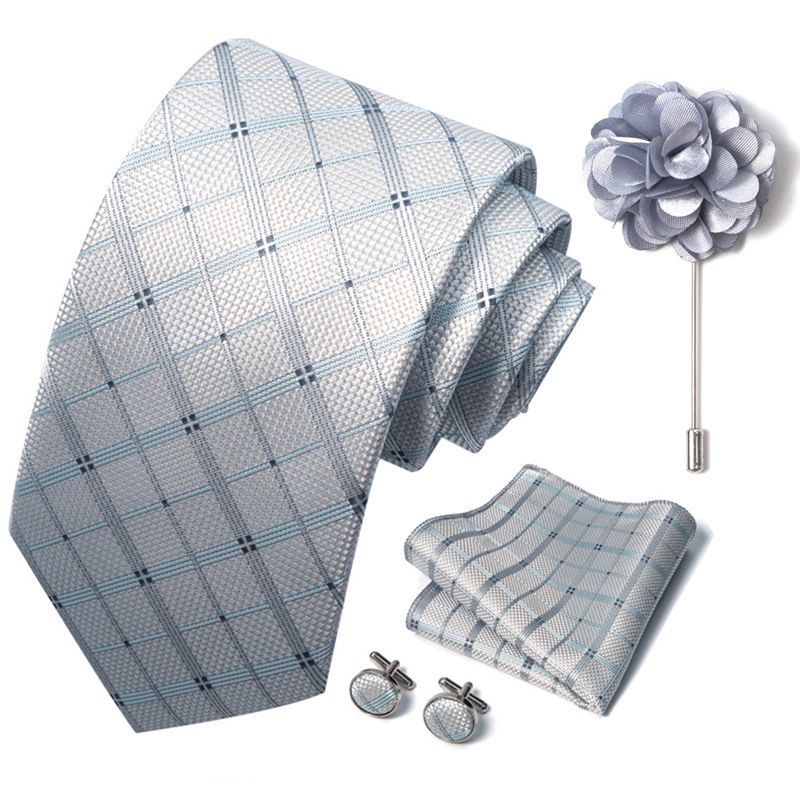 KIAMA - DASI WEDDING DASI FORMAL ABU PUTIH SOFT DASI PREMIUM SET MANUAL SAPUTANGAN JAS CUFFLINK DASI MOTIF