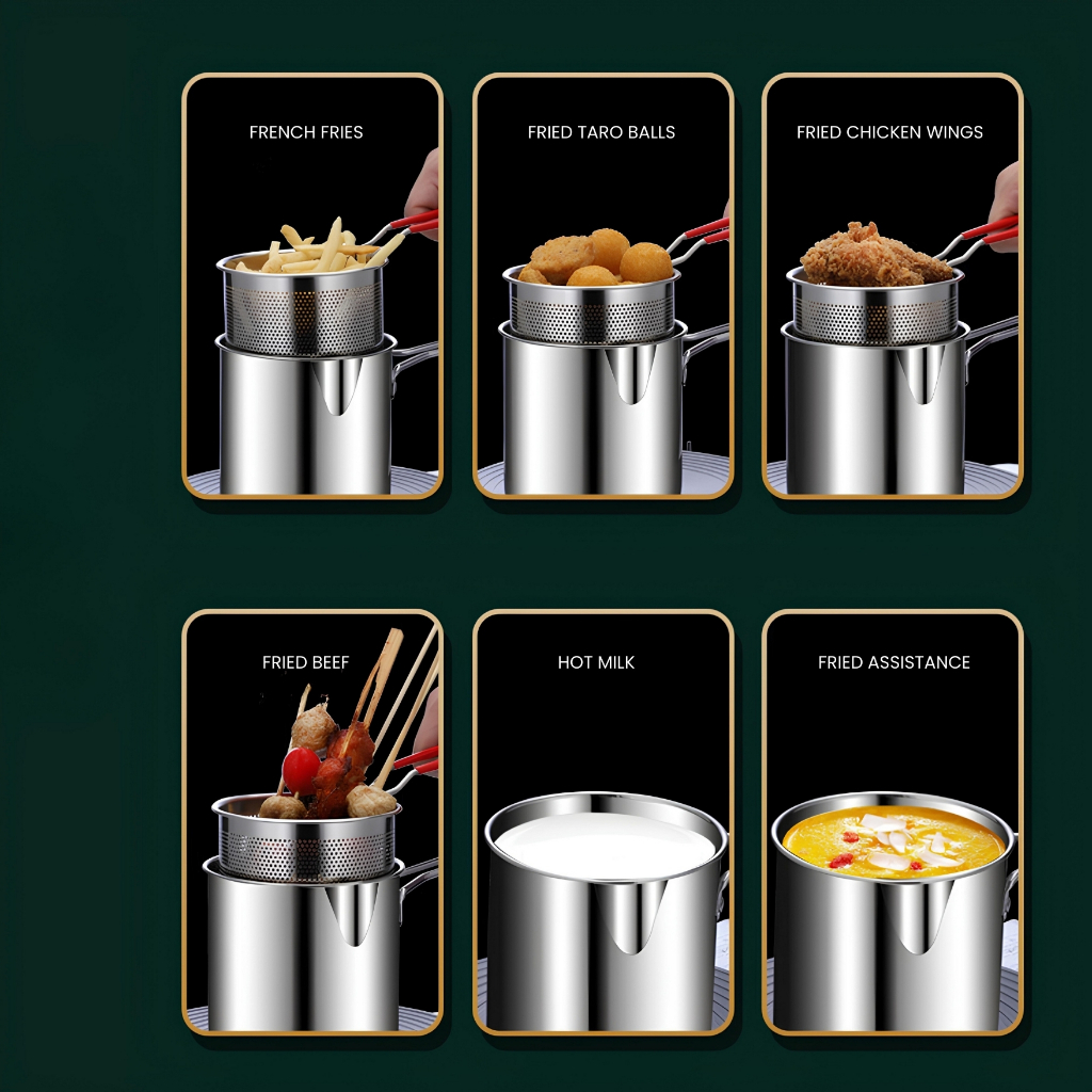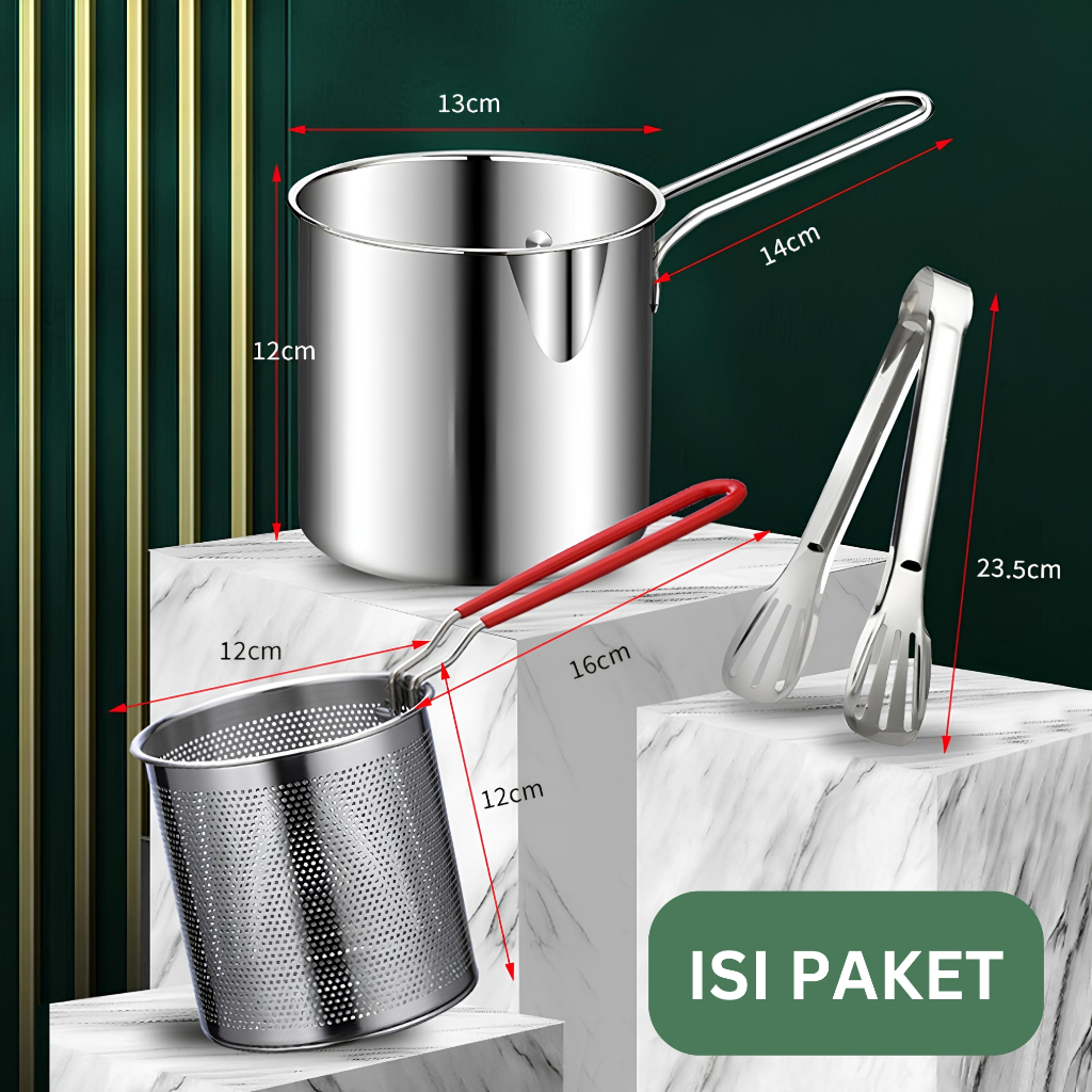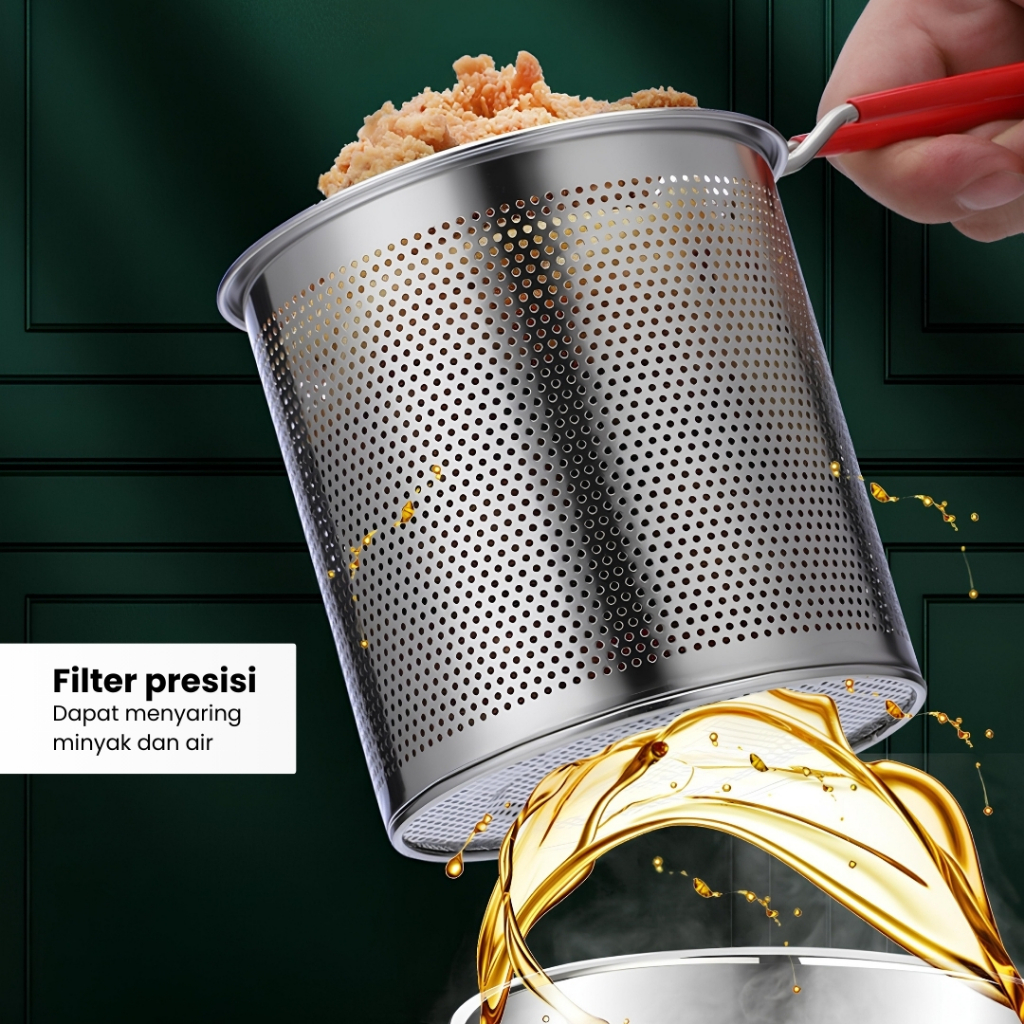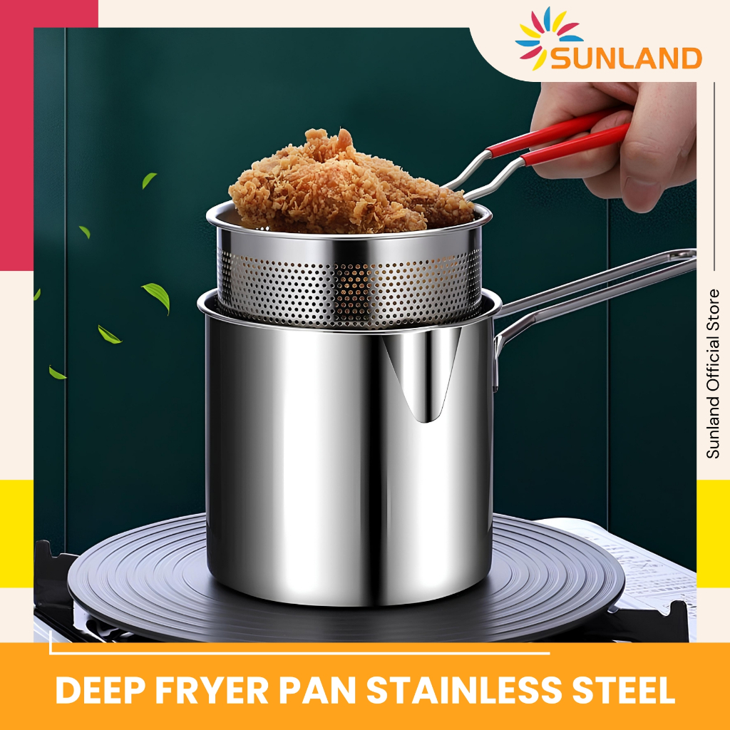[Star]SUNLAND Panci Multifungsi 4 in 1 Deep Fryer Set Penggorengan Rebus Stainless Saringan Capitan Klip