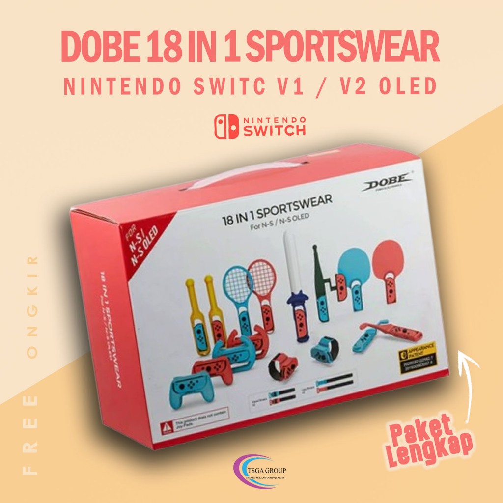 Dobe 18 In 1 Sportswear Joycon Nintendo Switch V1 V2 Oled 30 In 1 Sport Suit Fishing Drum Tns 2125