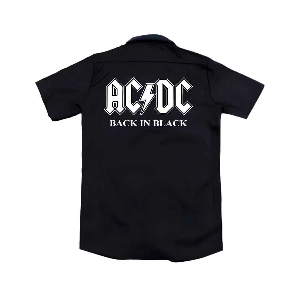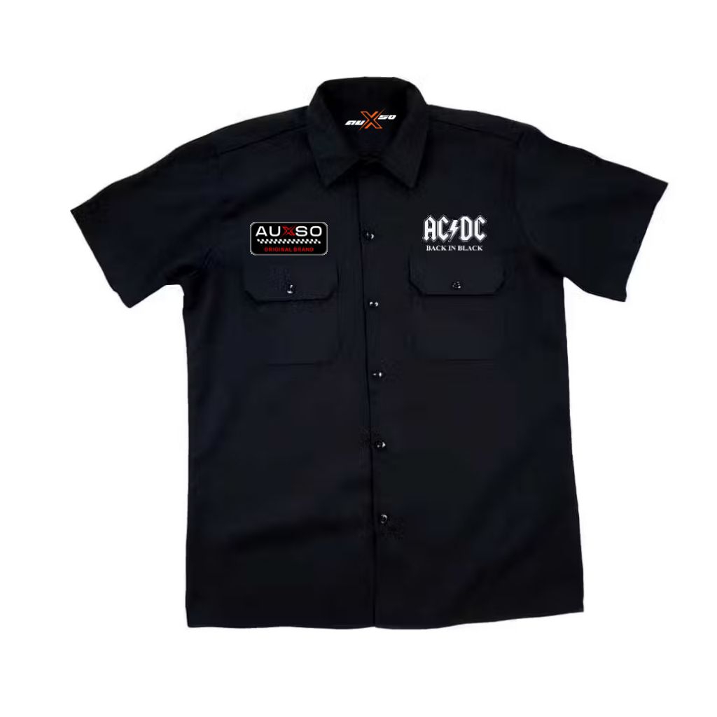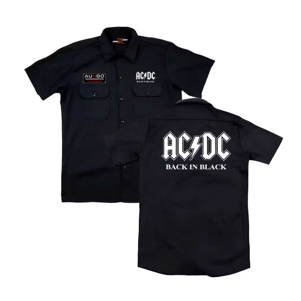 Auxso Clothing - Kemeja pdh - Workshirt - acdc back in black - Pakaian pria - Pakaian wanita - Vintage -Casual Streetwe