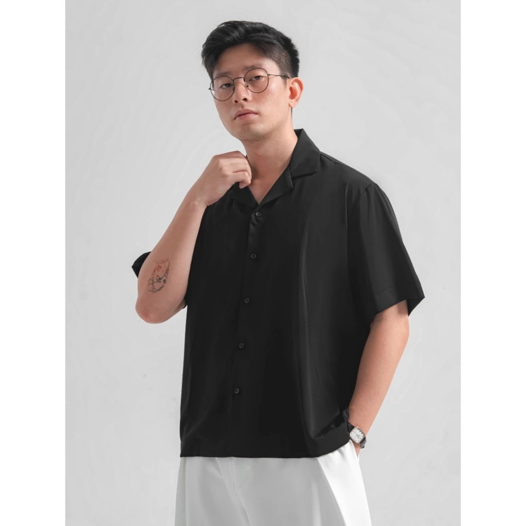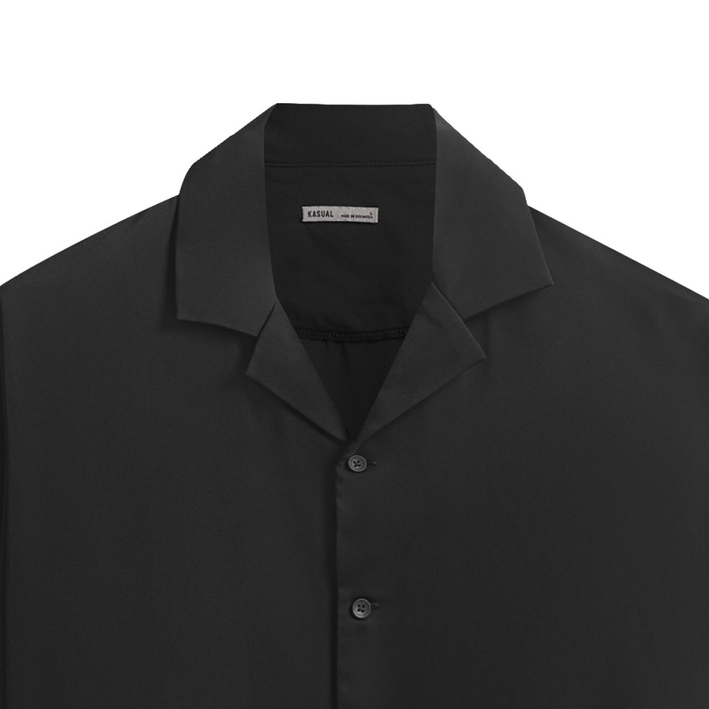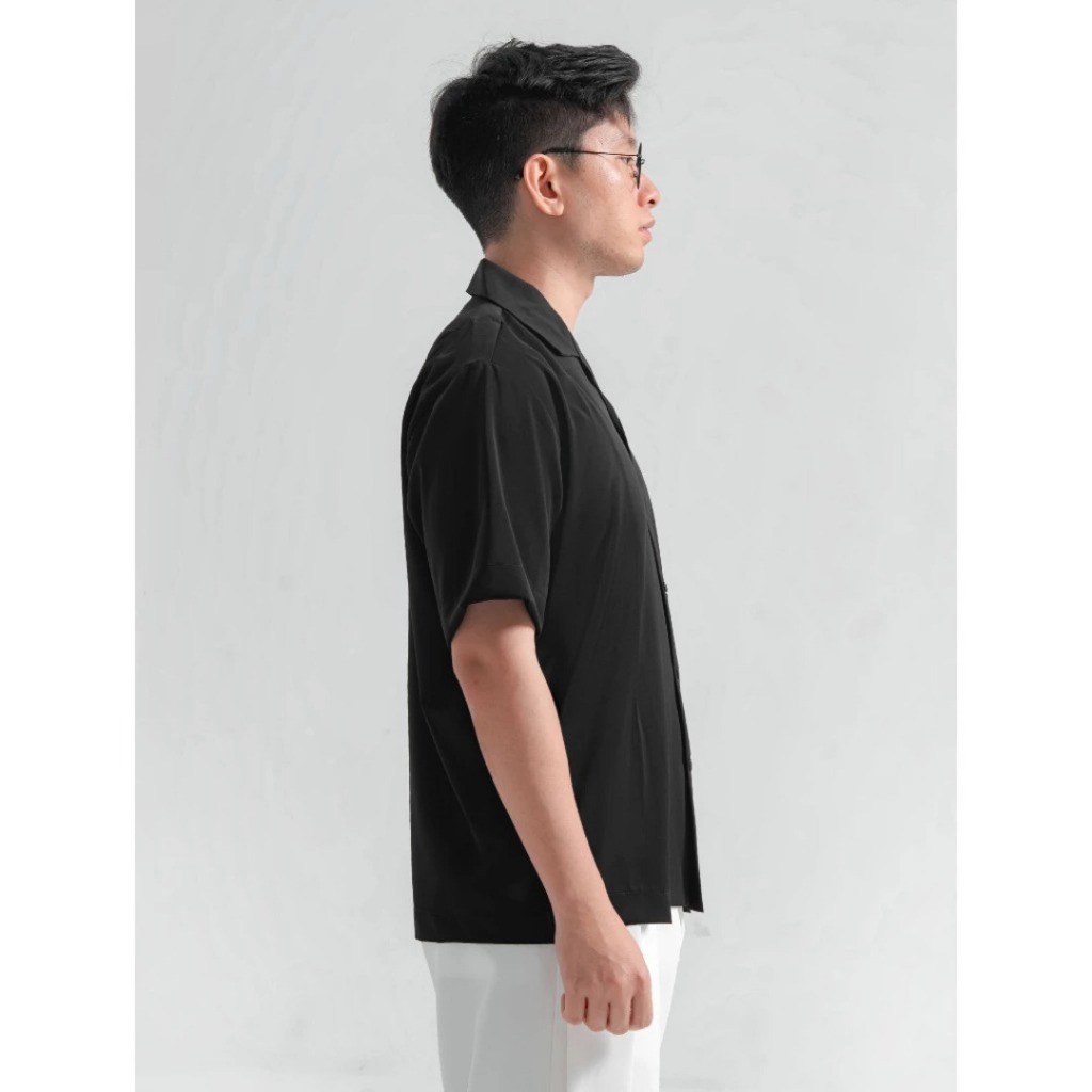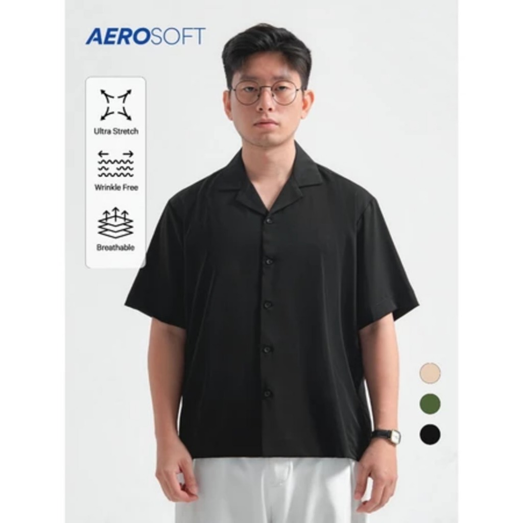 Kasual Aerosoft Black Kemeja Cuban Lengan Pendek