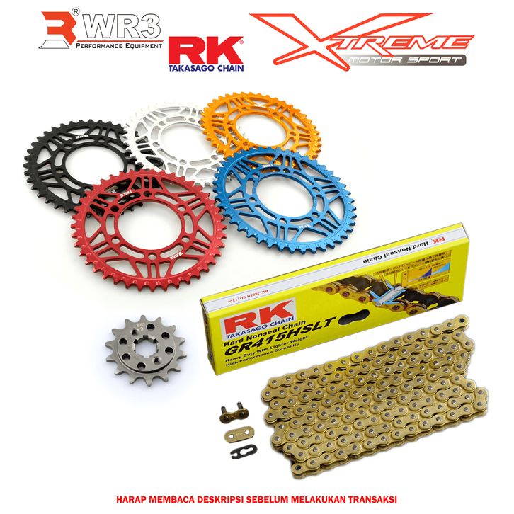 Gear Set Depan Belakang WR3 & Rantai RK Chain ZX25R Ninja CBR 250 GSX 150 150RR RR R25 MT25 R15 MT15 ER6 RX King